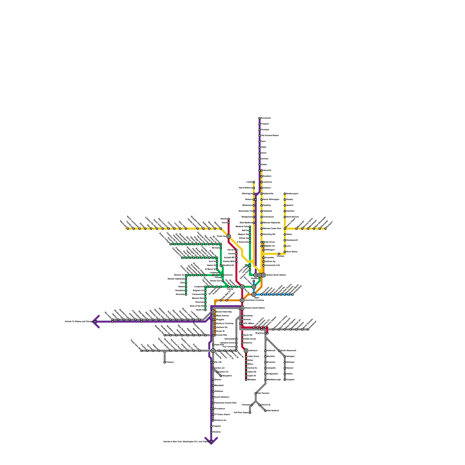 Boston MBTA Commuter Rail Old Colony Line and South Coast Rail
