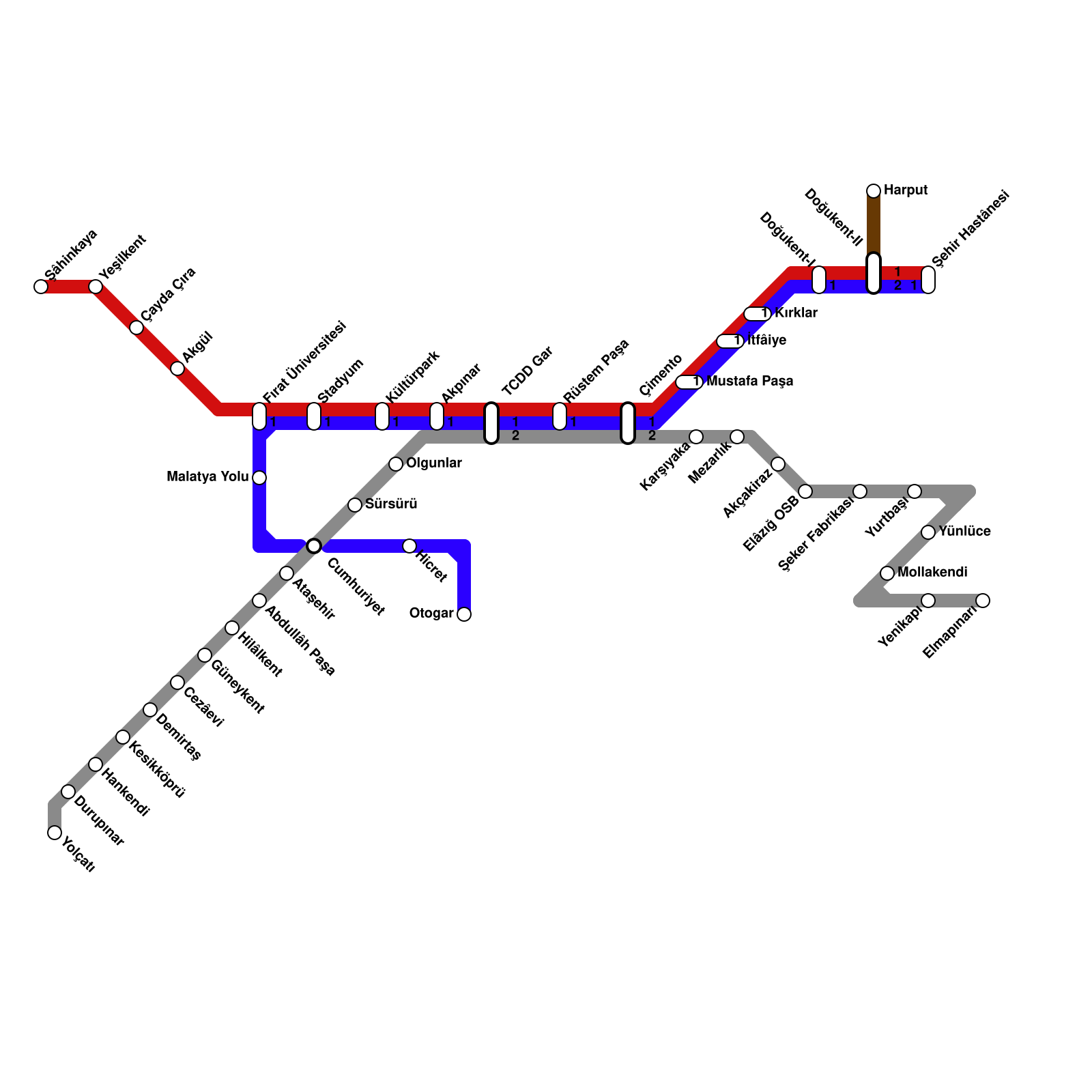 Elâzığ Raylı Sistem Ağ Haritası (real)