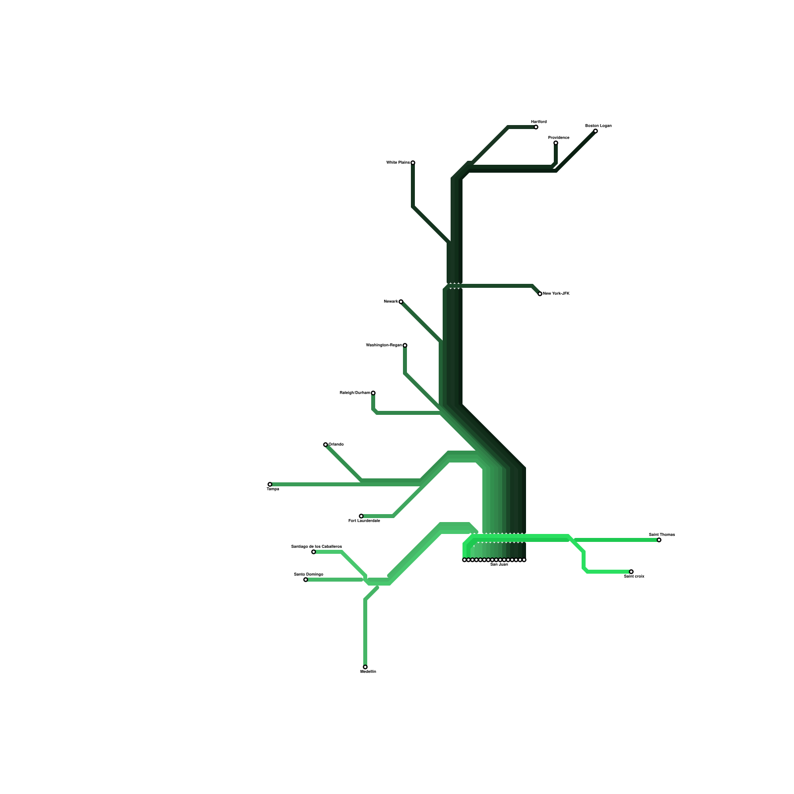 JetBlue Route Map from from San Juan (real)
