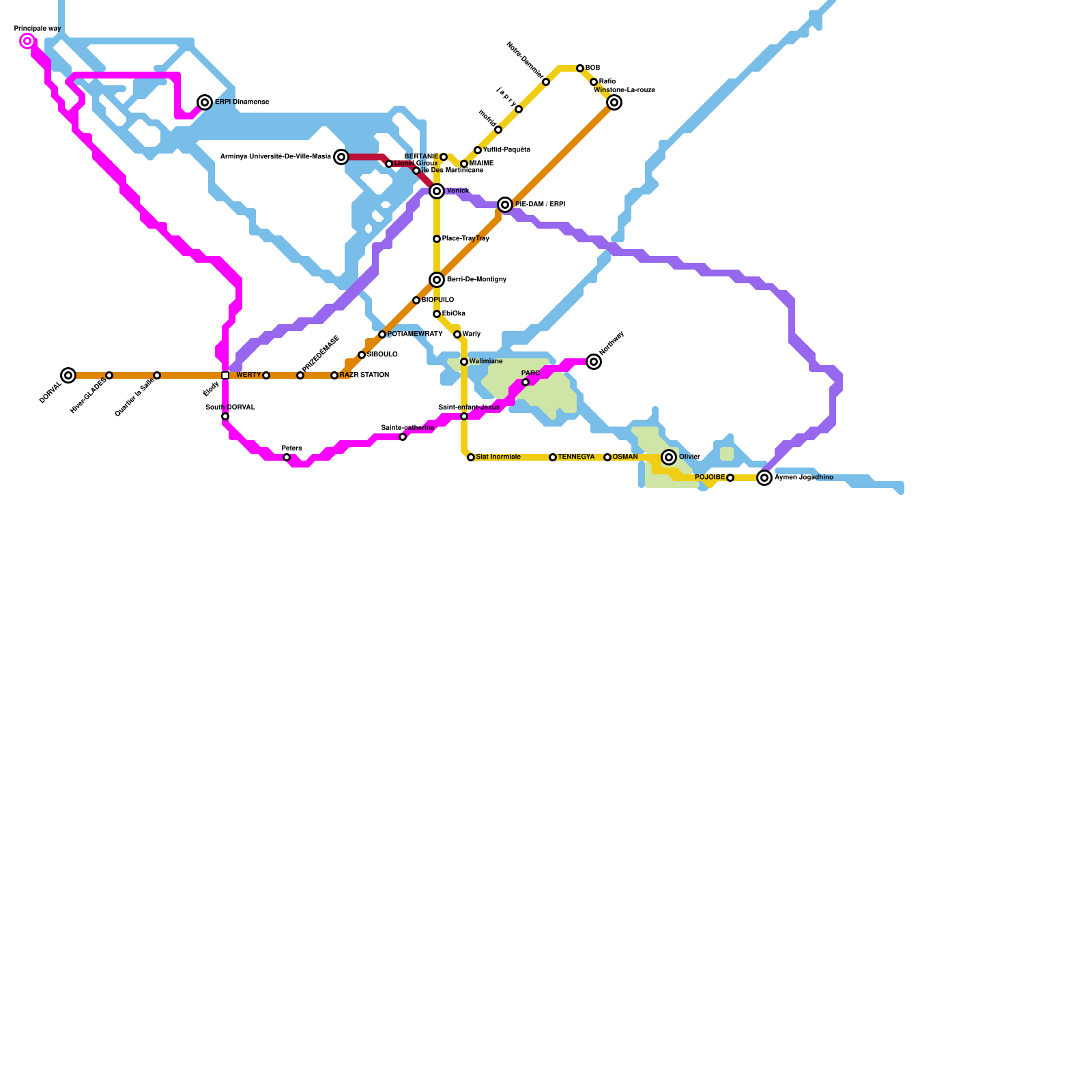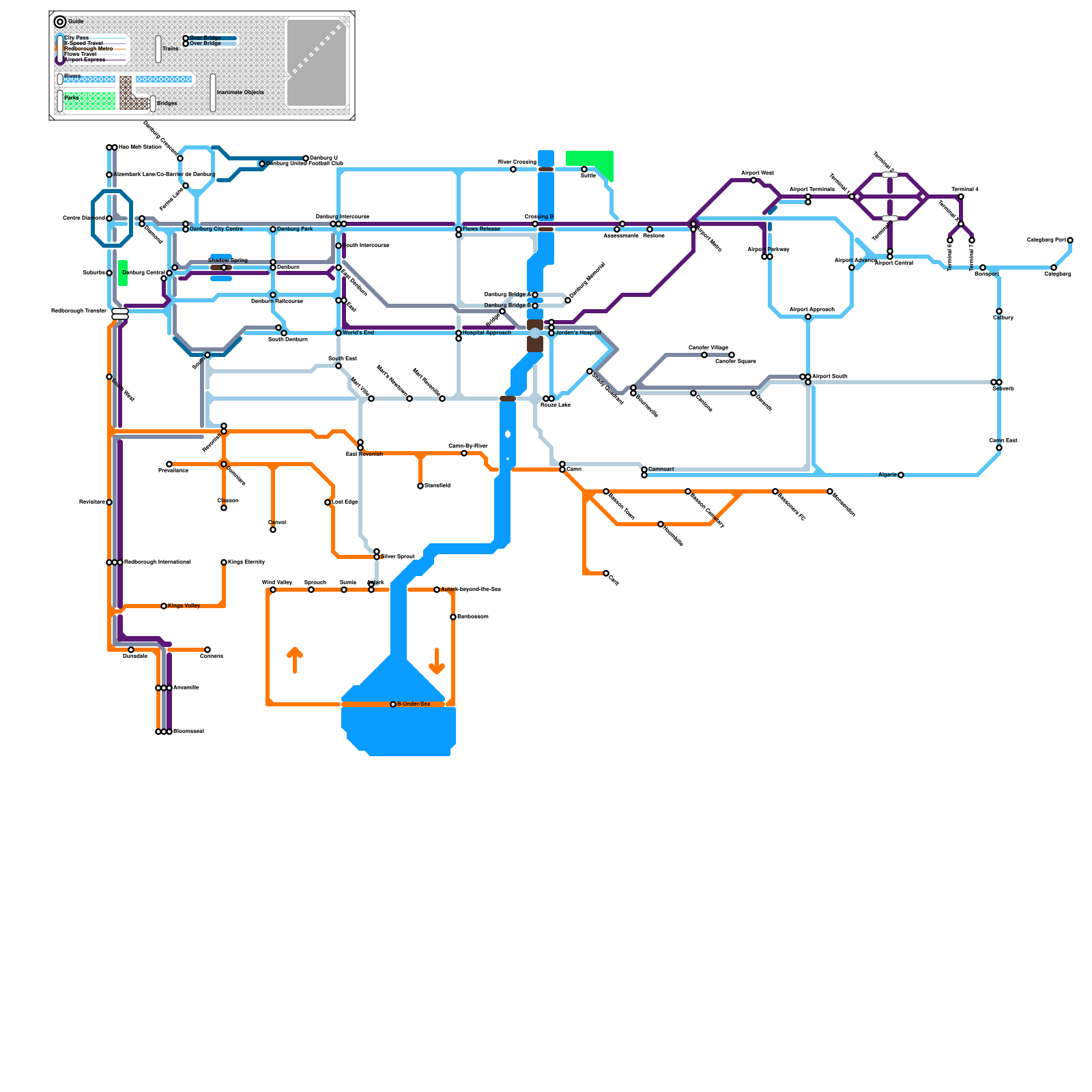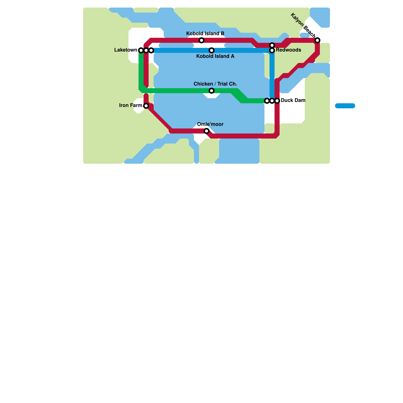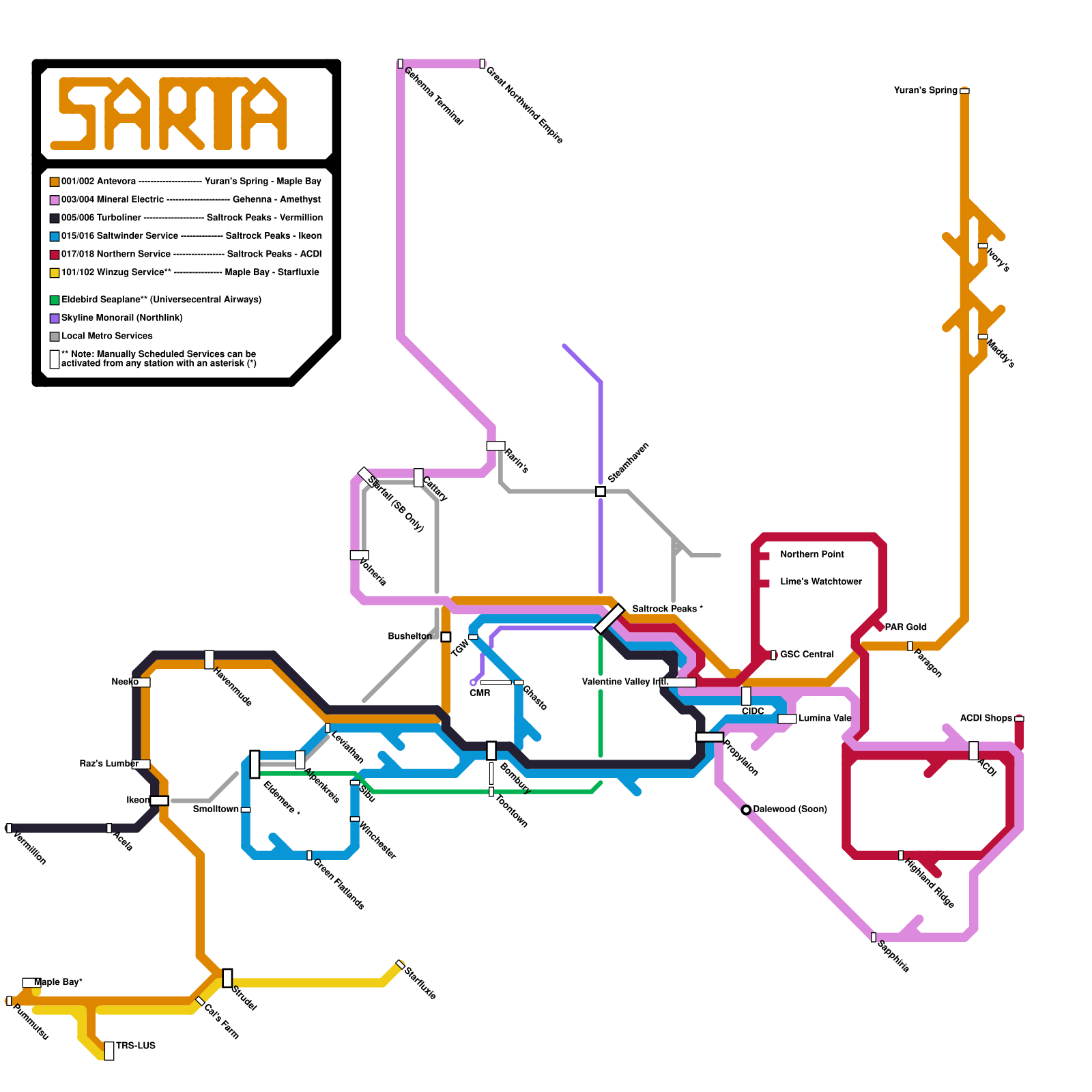 SeaRail Oceanic (not a metro, but instead a waterproof railroad that connects the Solomon Islands, Palau, Vanuatu, Nauru, Kiribati, Tuvalu, Tonga, and Samoa) (speculative)