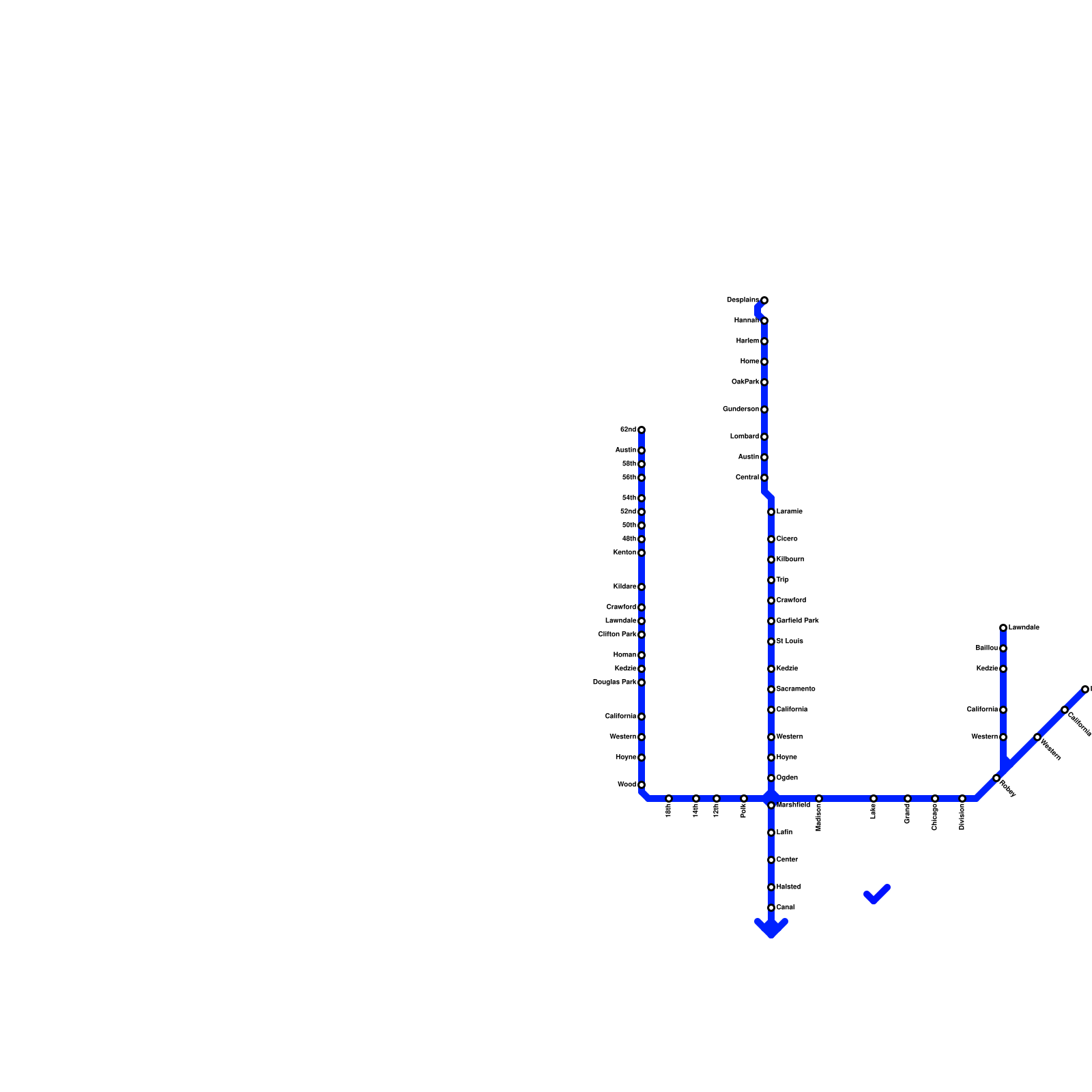 Chicago L WEST NORTHWEST ROUTES (real)