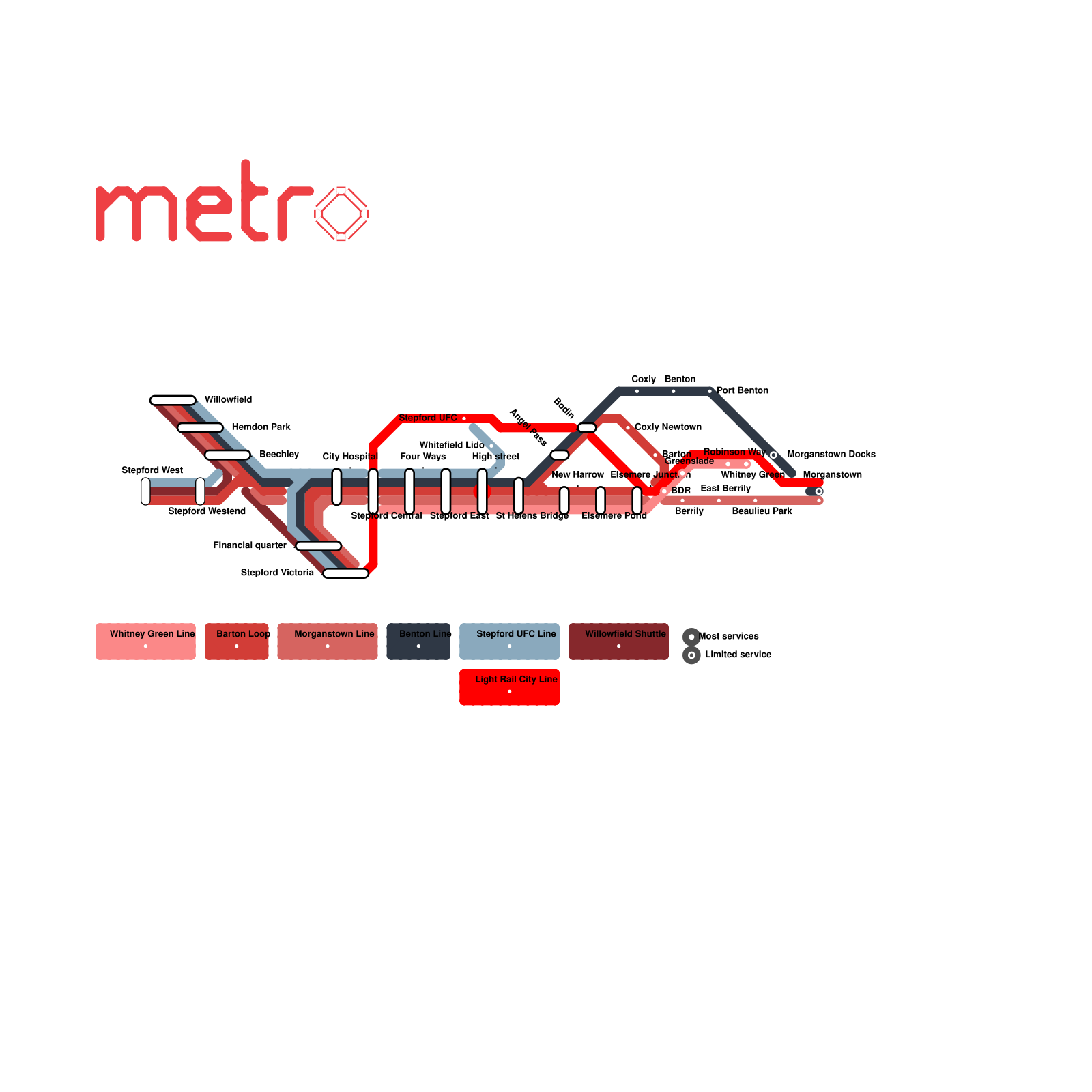 R002 (Stepford Central to Port Benton) Service diagram (Operated by Metro)