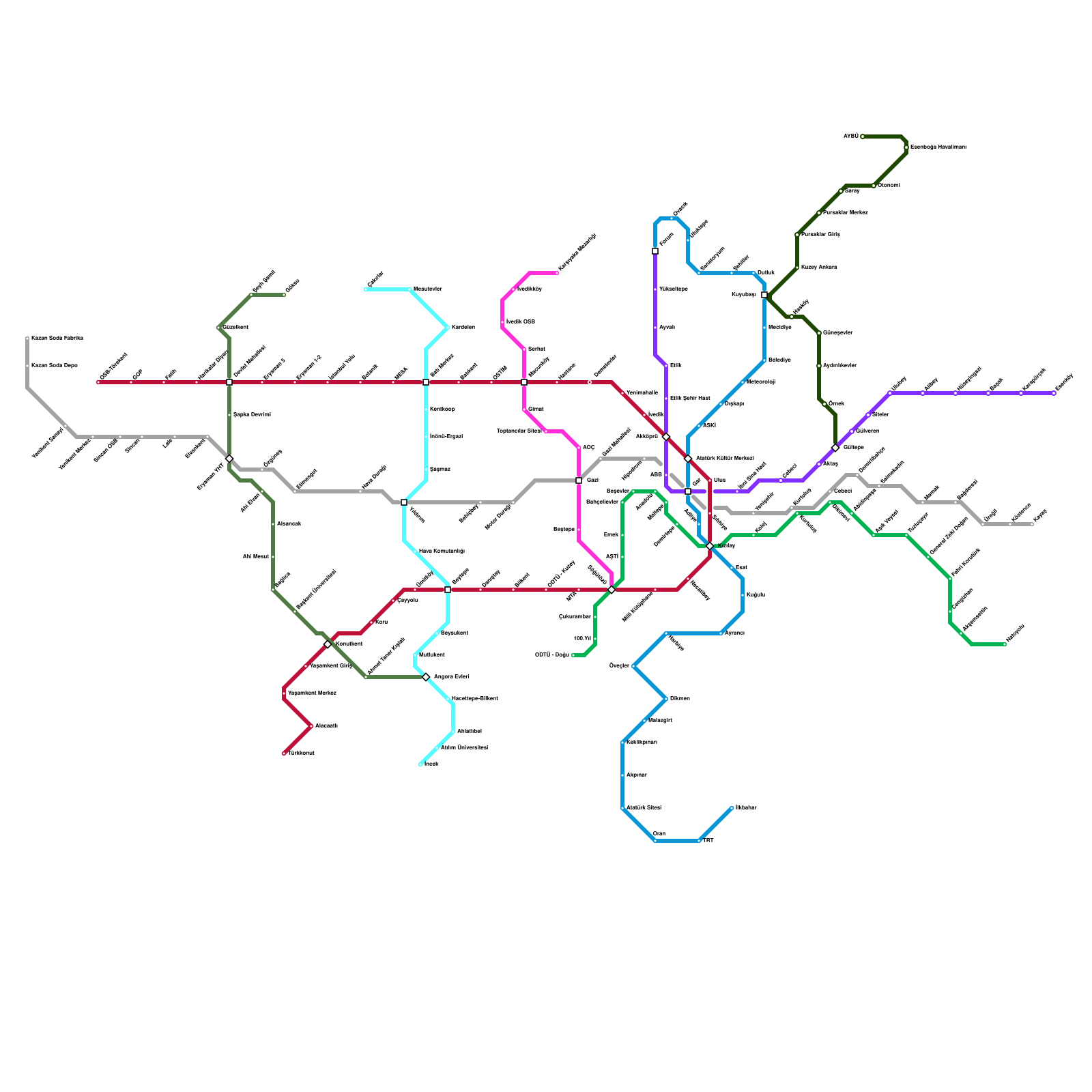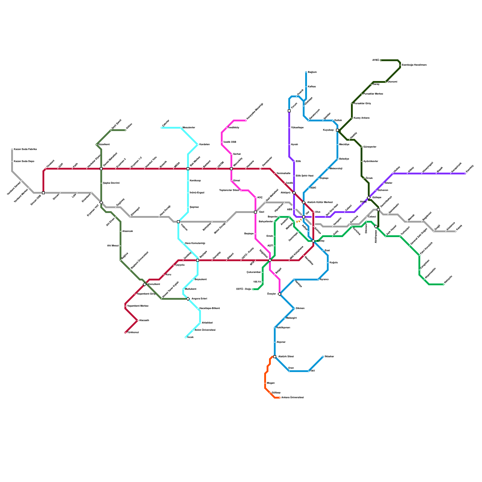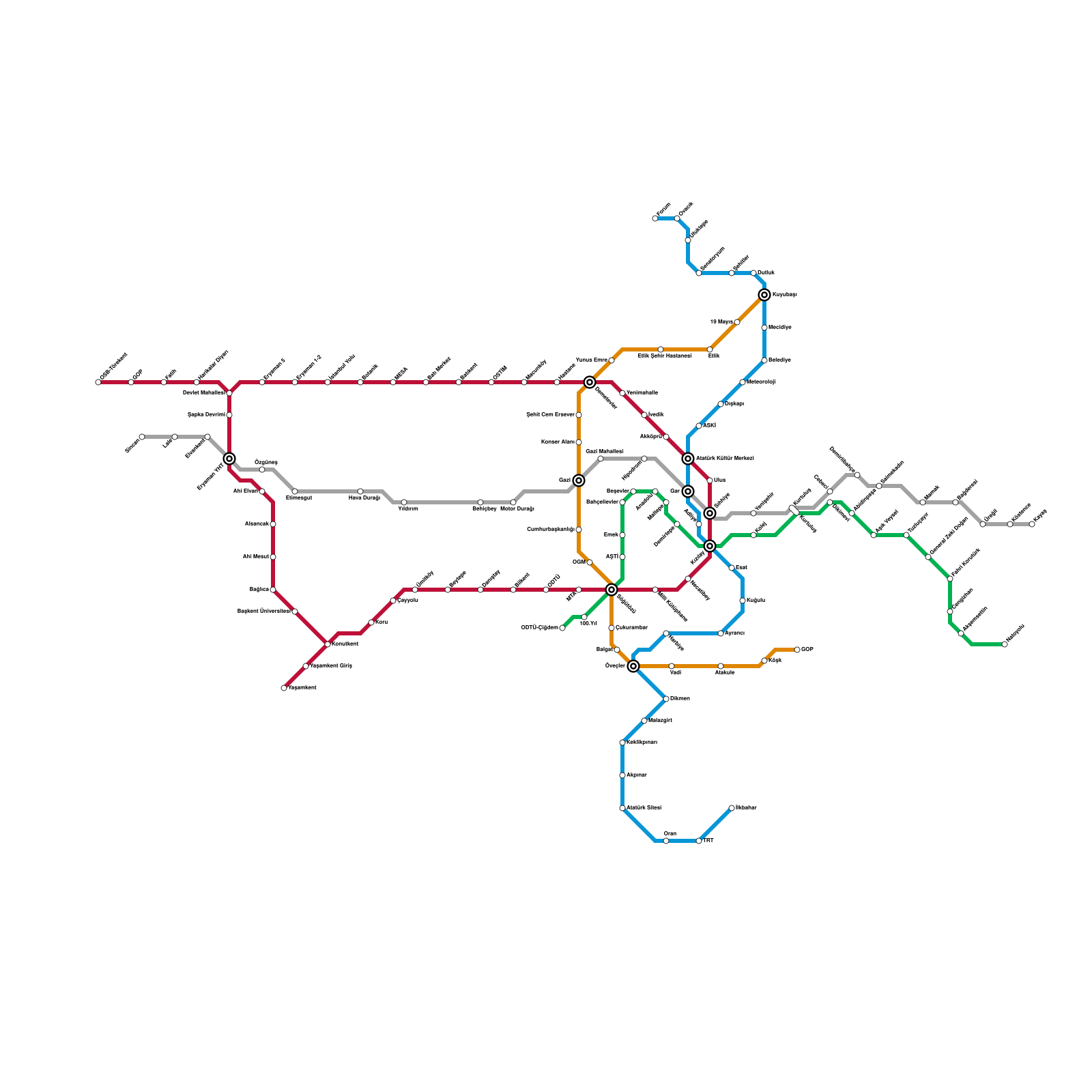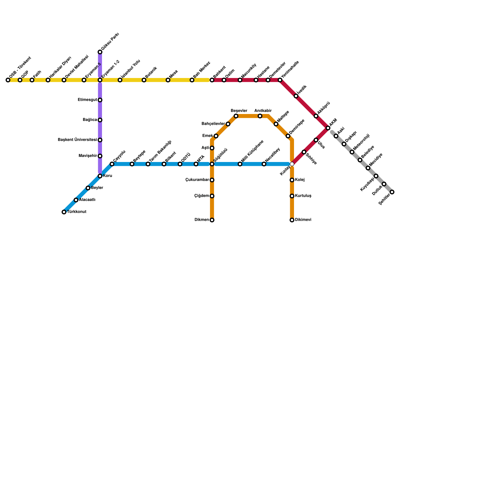 Ankara Metro Haritası Projeli İstasyonlar