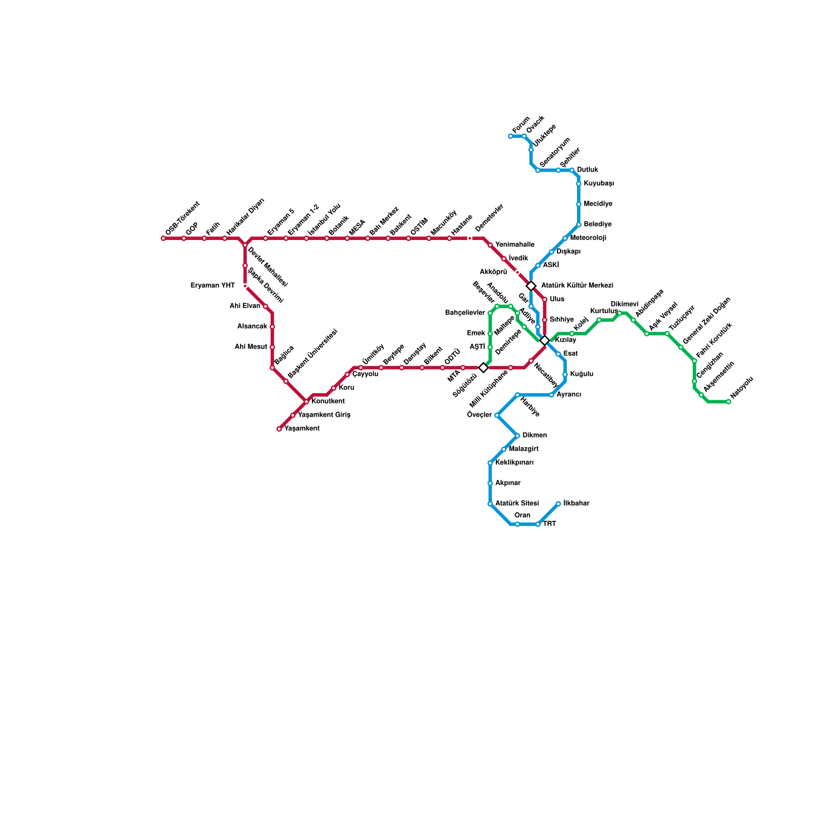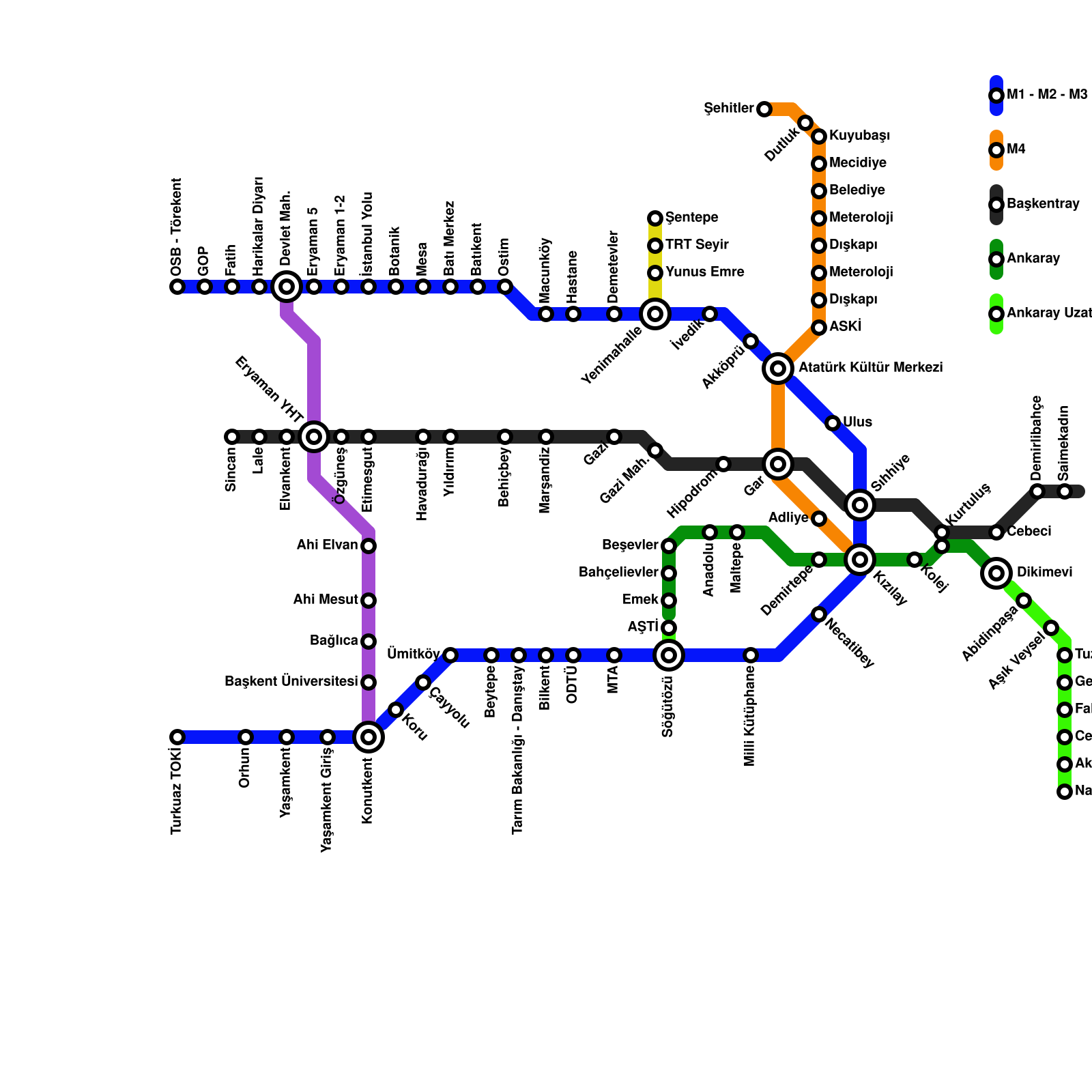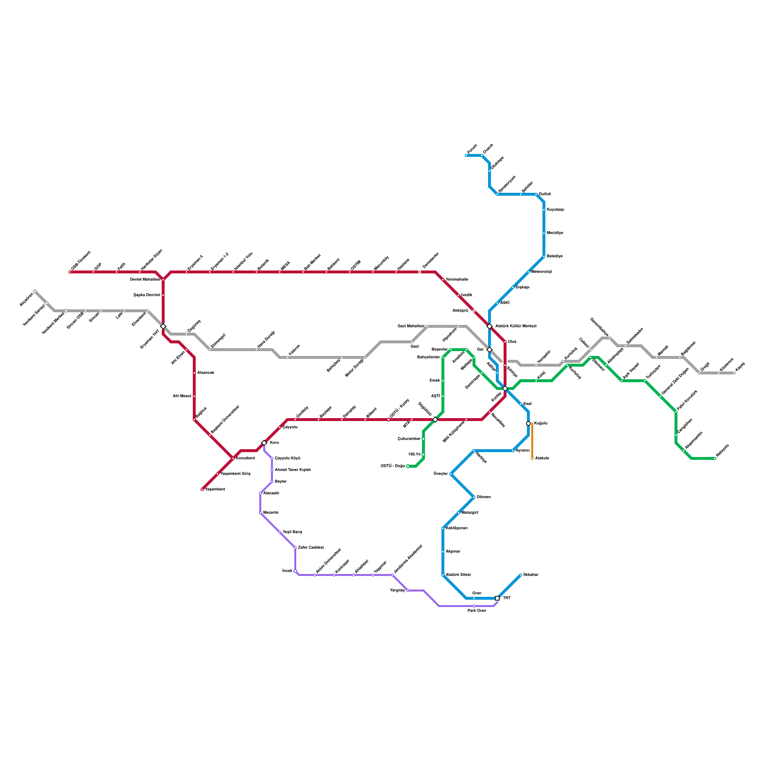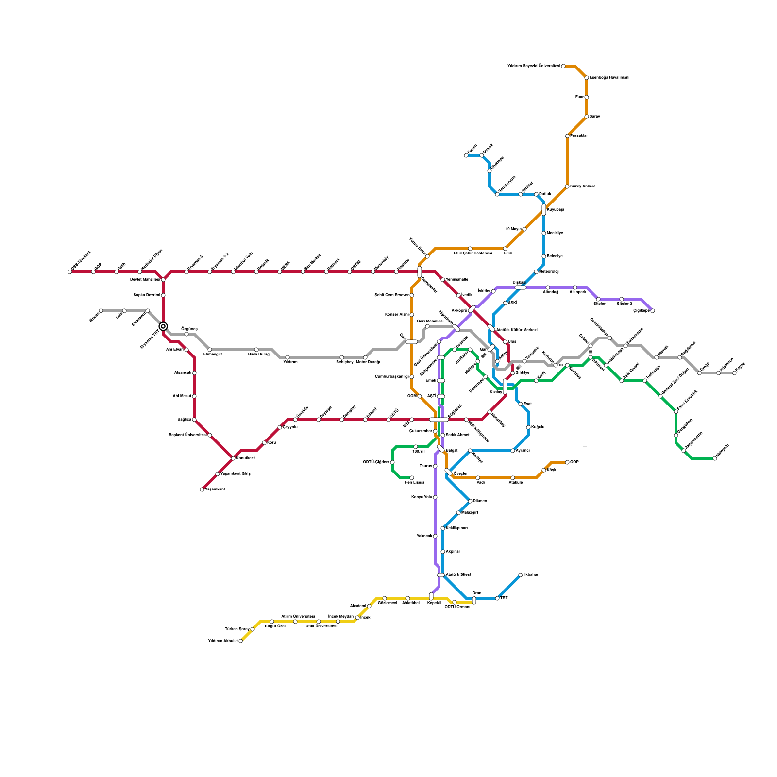 Ankara Metro Haritası Projeli İstasyonlar