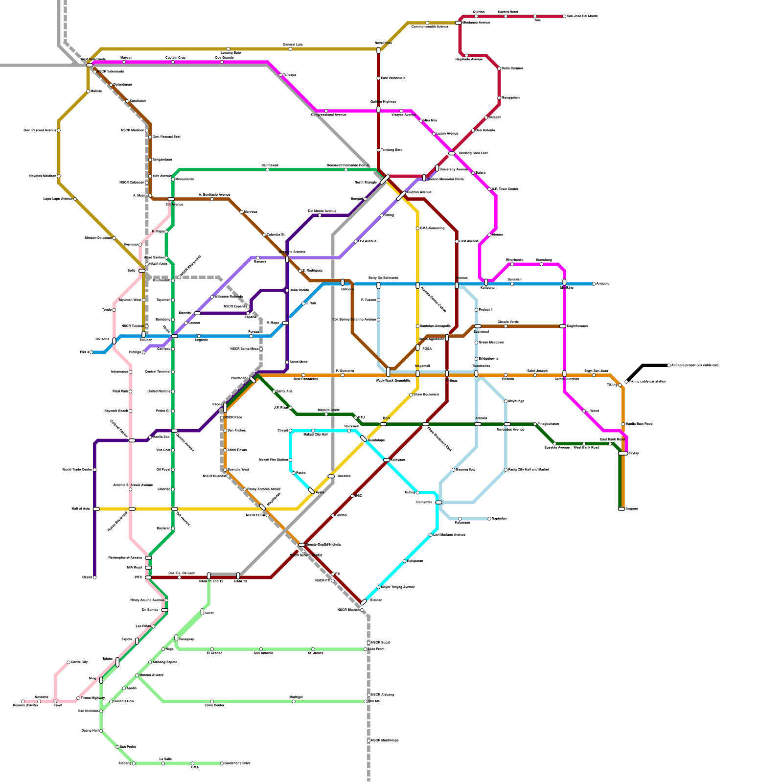 Metro Manila's rail system with some fictional elements added (speculative)