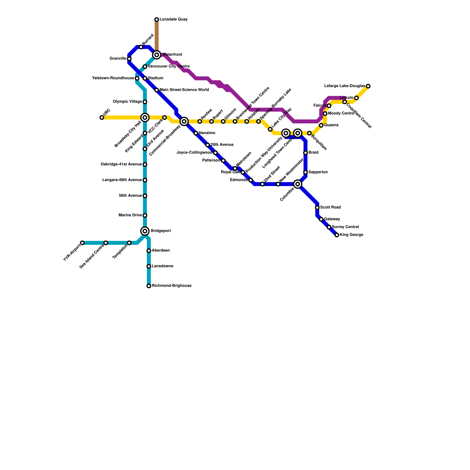 Vancouver Skytrain and SeaBus Network (real)
