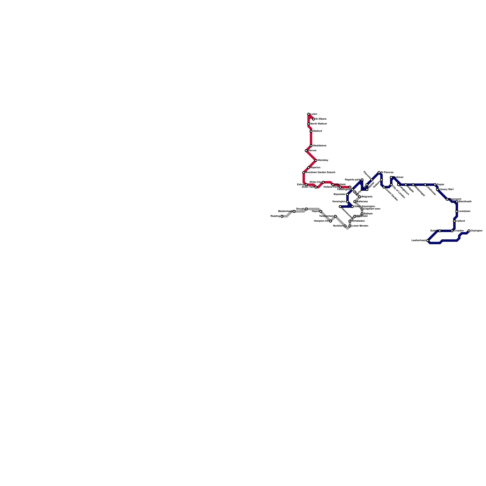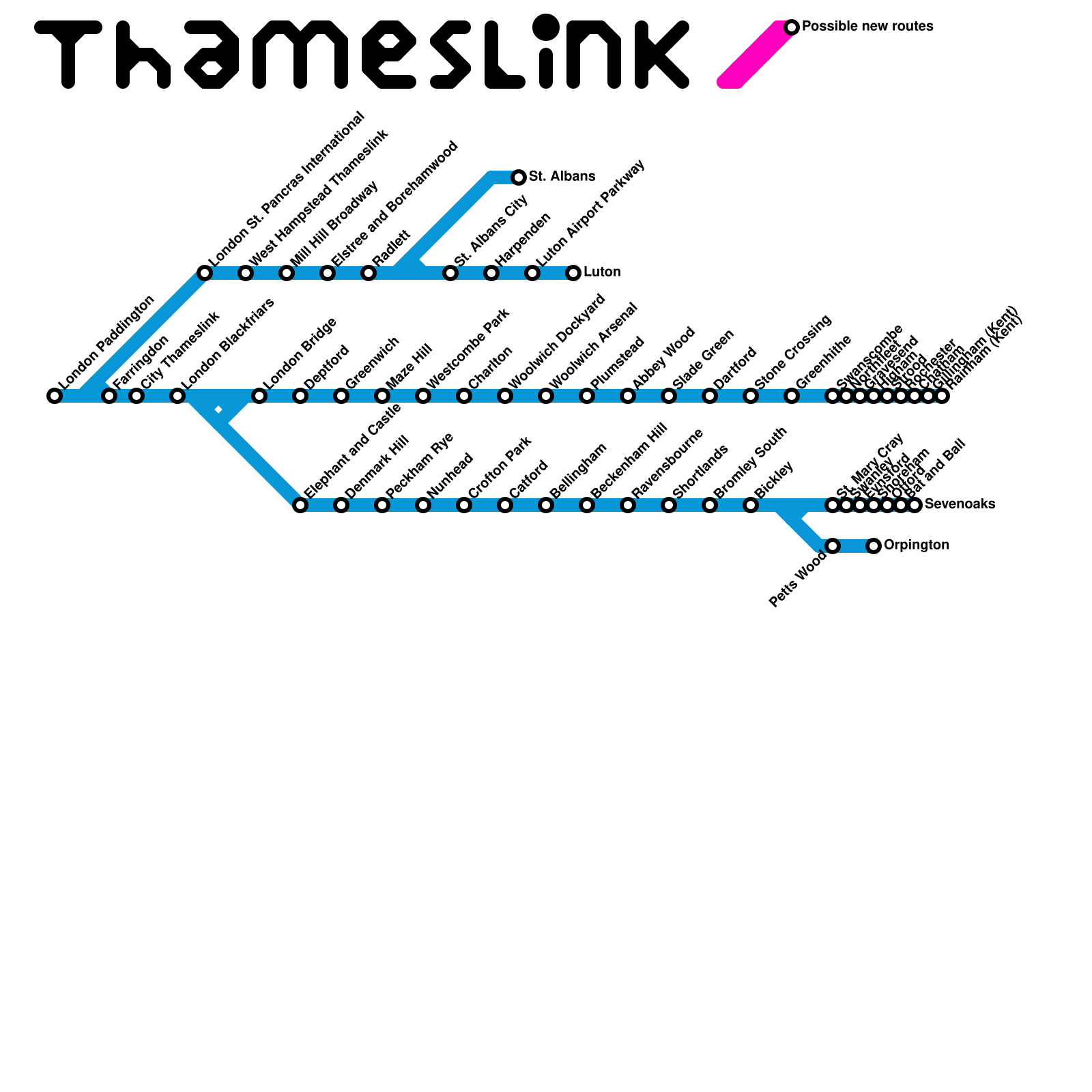 London and suburbs (possible new Thameslink routes) (speculative)