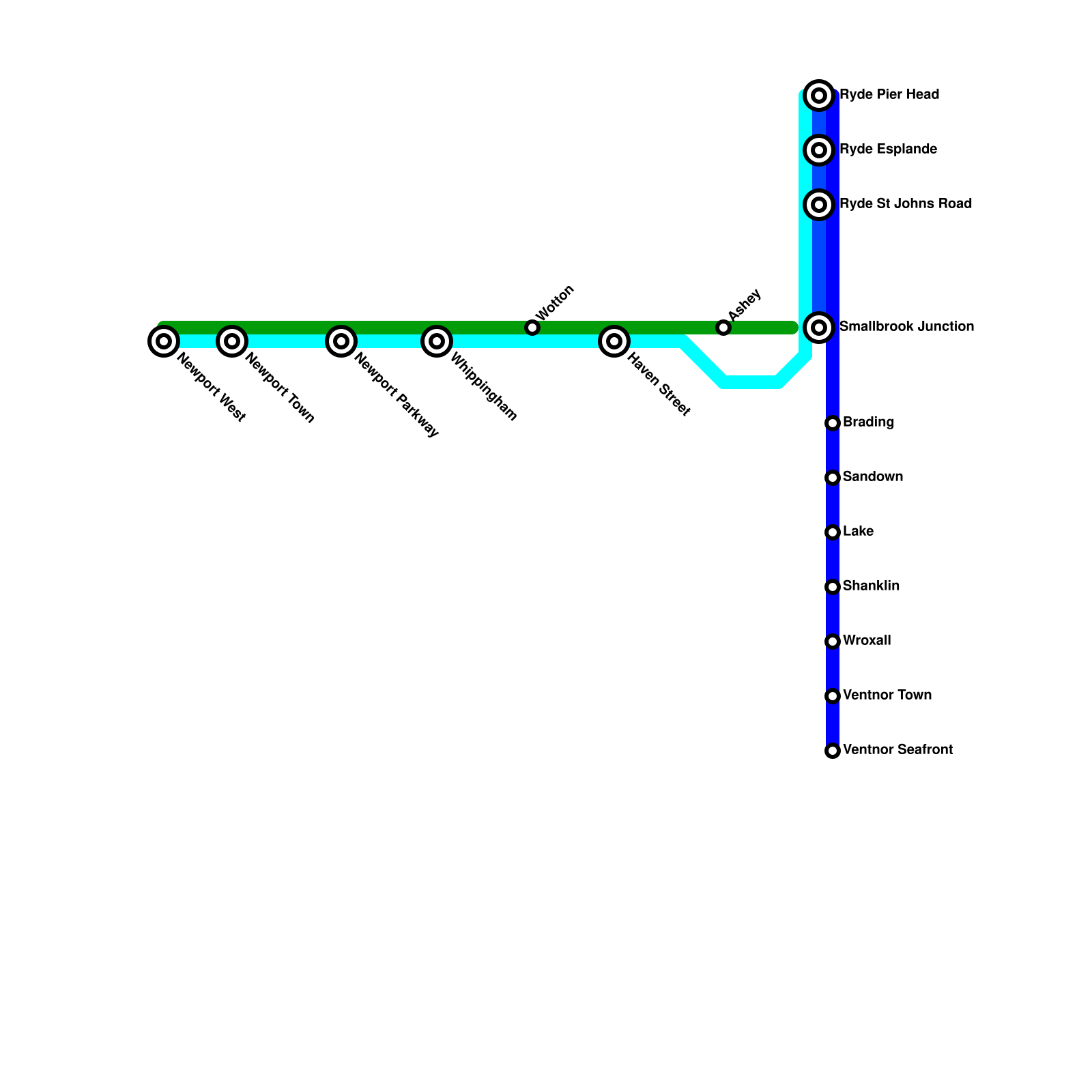 Isle of Wight Island Line post reopening of some former lines (speculative)