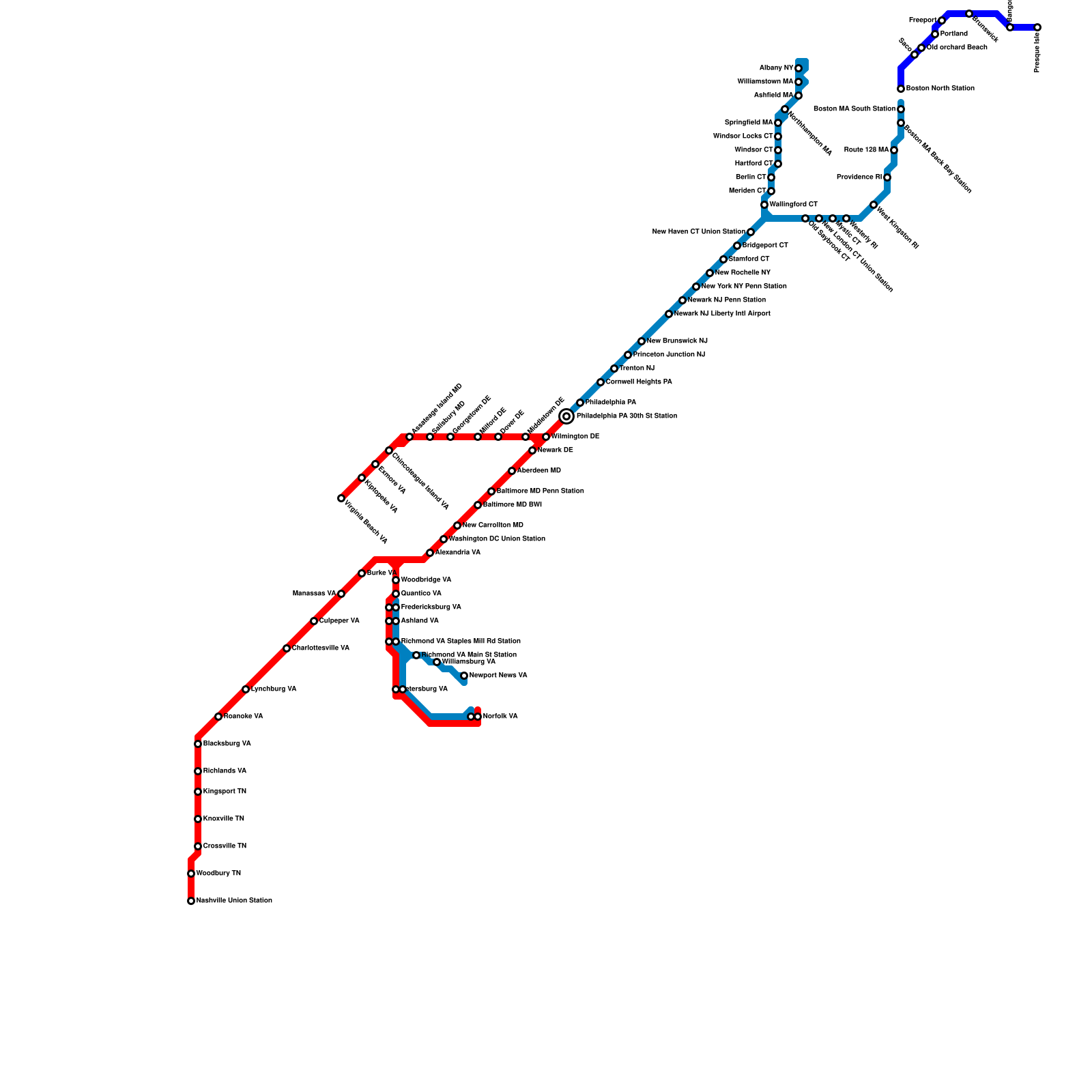 Amtrak Downeaster, Southeast Regional and Northeast Regional