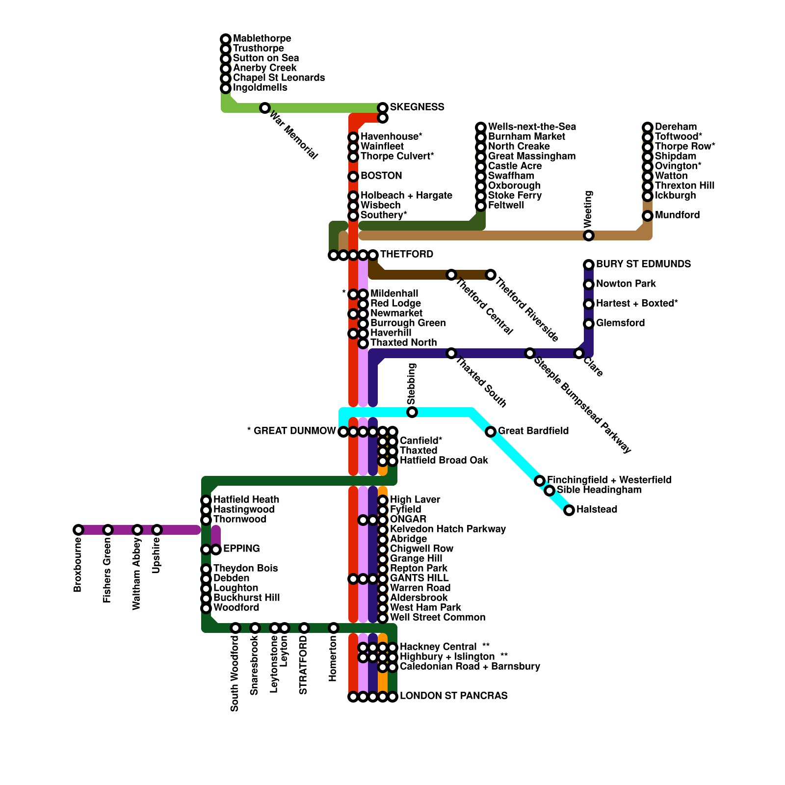Great Countryside Network Map (London, Essex, East of England, Lincolnshire) (speculative)
