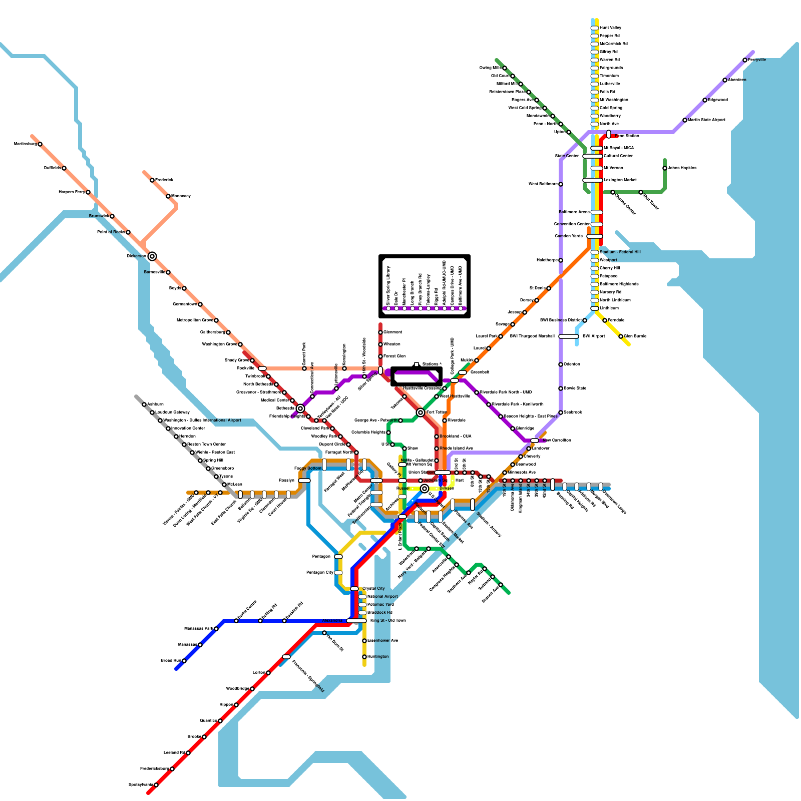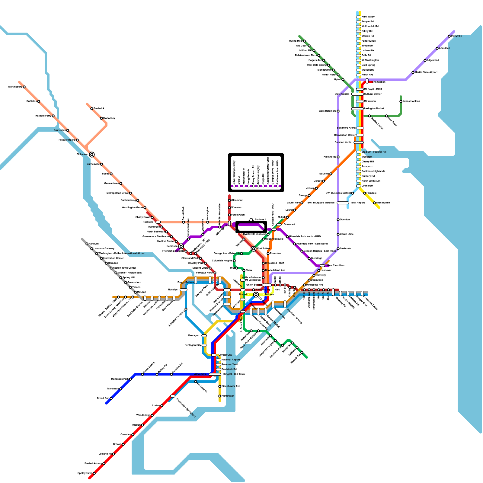 Washington DC Metropolitan Area Rail Transit (real)