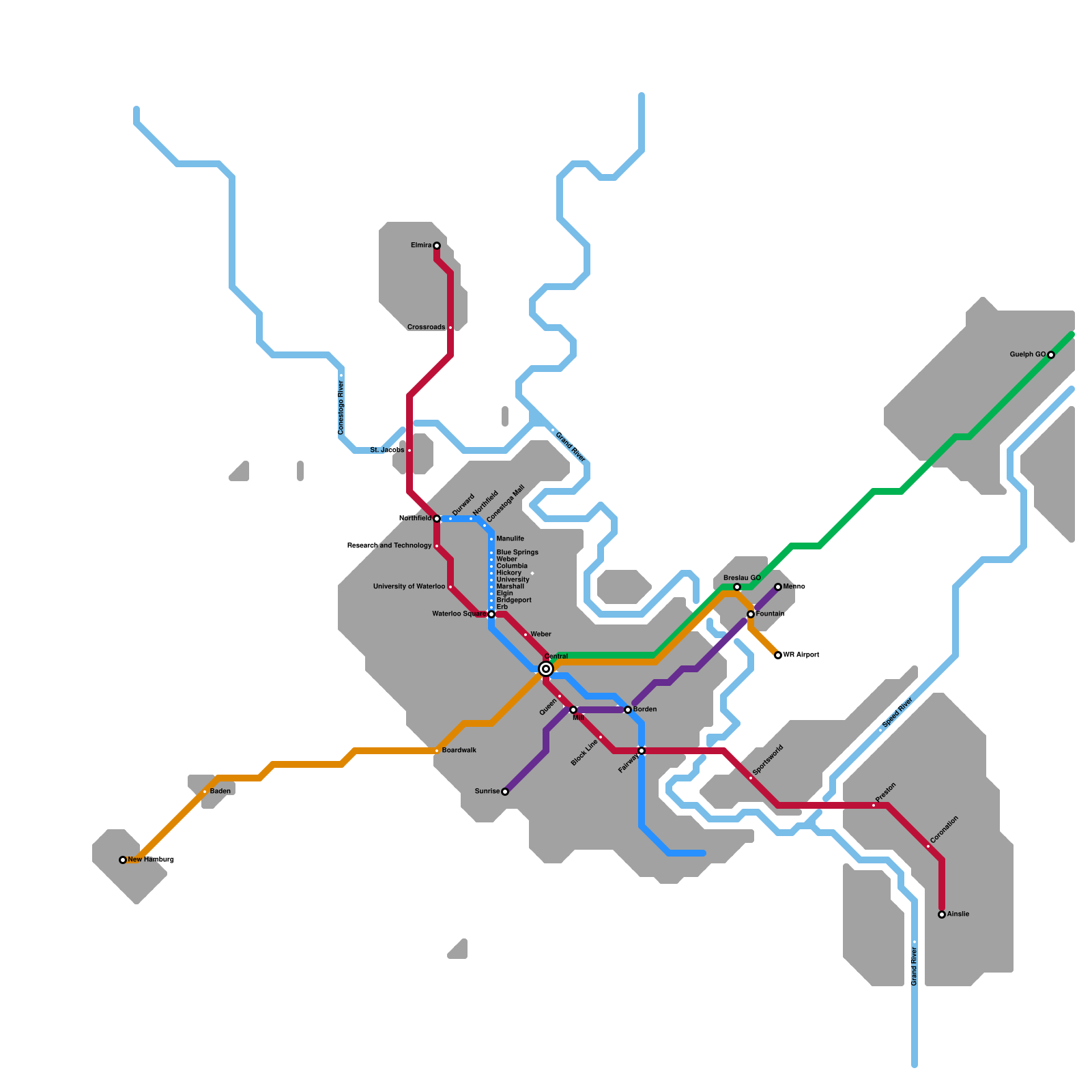 Region of Waterloo Rail Transit Map (speculative)