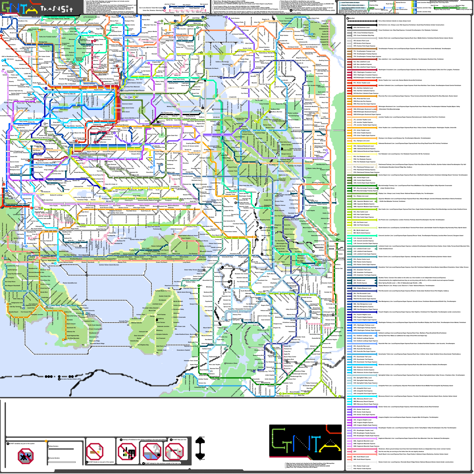 SeaRail Oceanic (not a metro, but instead a waterproof railroad that connects the Solomon Islands, Palau, Vanuatu, Nauru, Kiribati, Tuvalu, Tonga, and Samoa) (speculative)