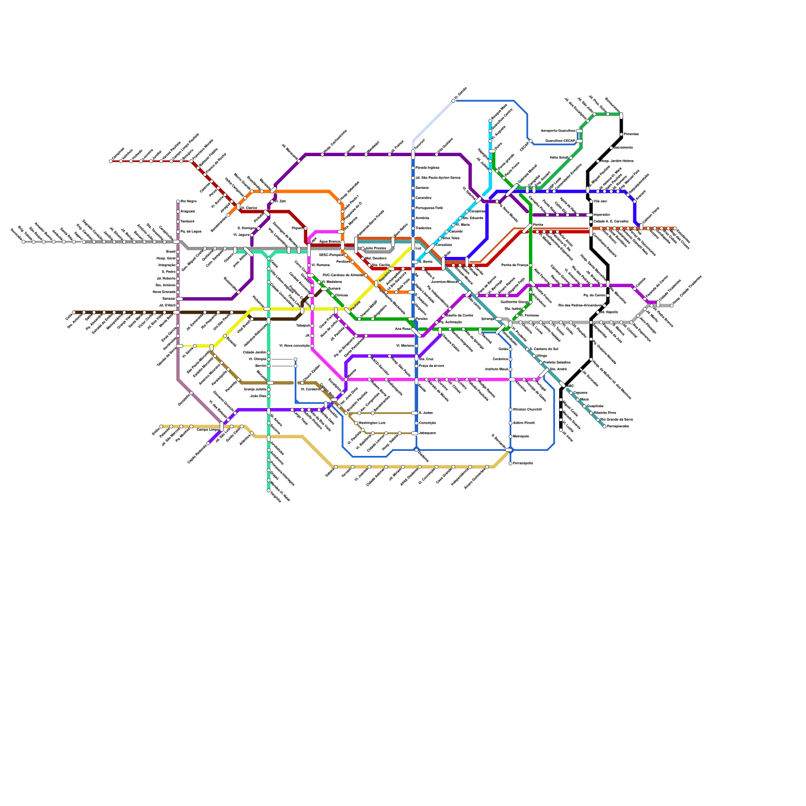 São Paulo Metro System, with fictonal lines. (J/M lines modified)) (speculative)