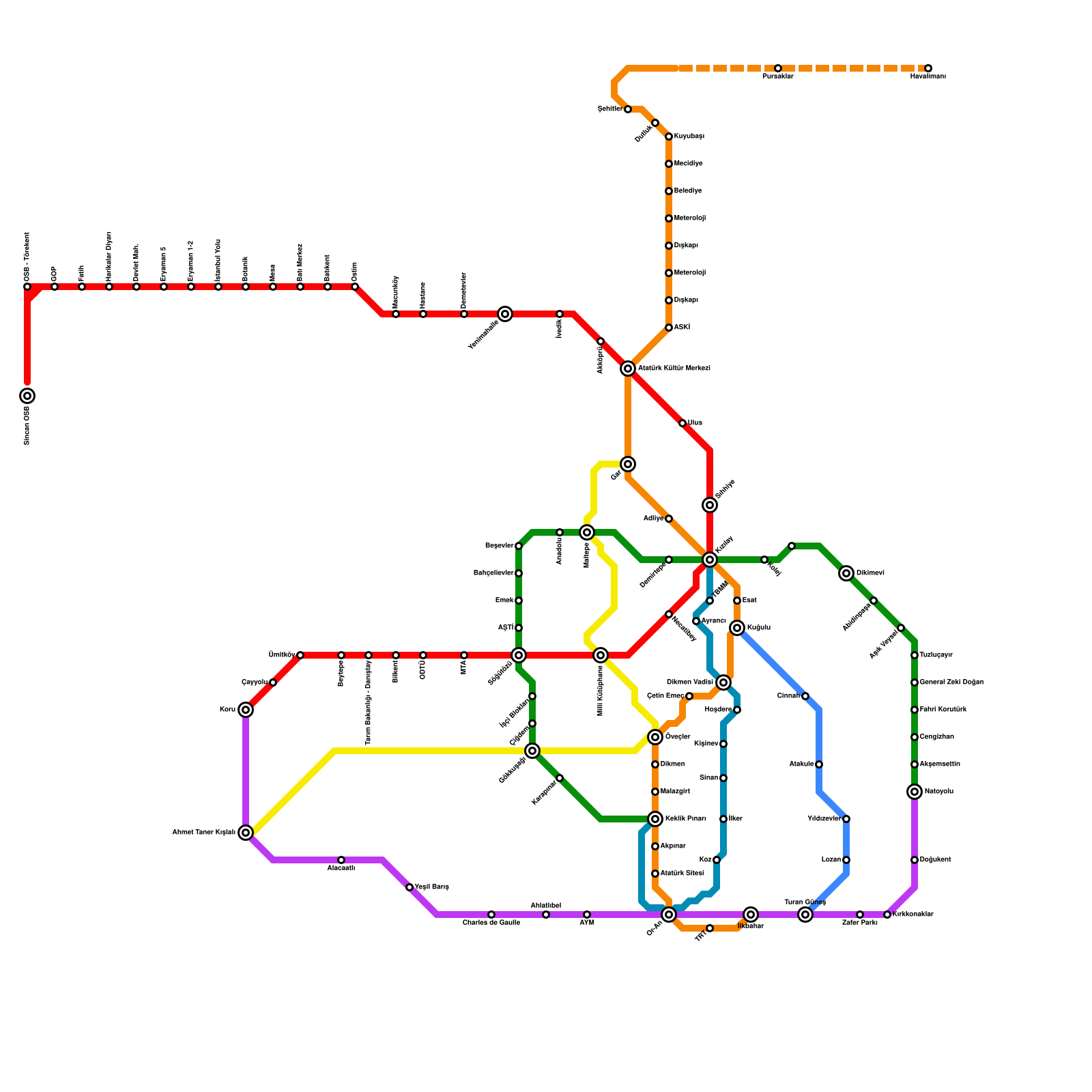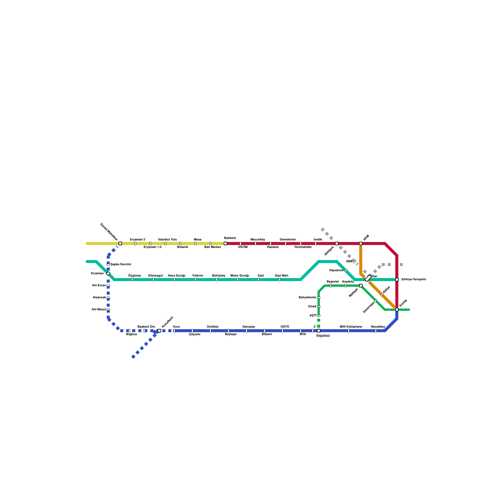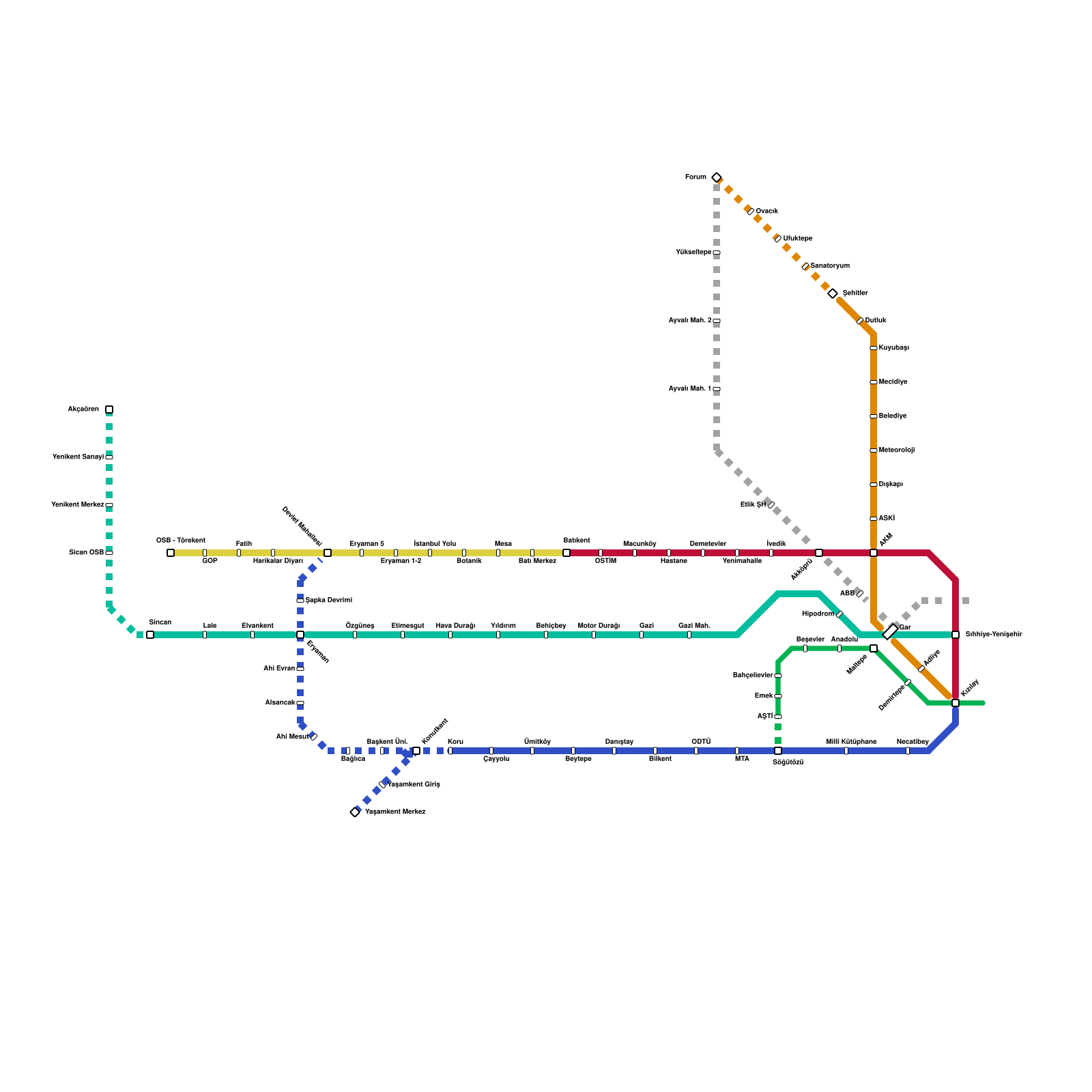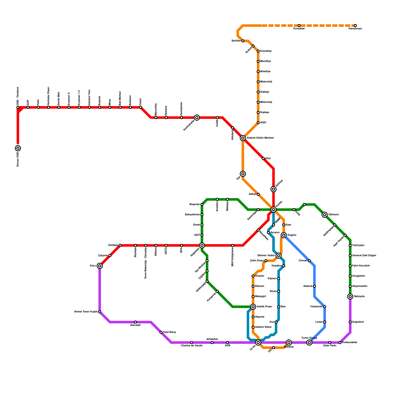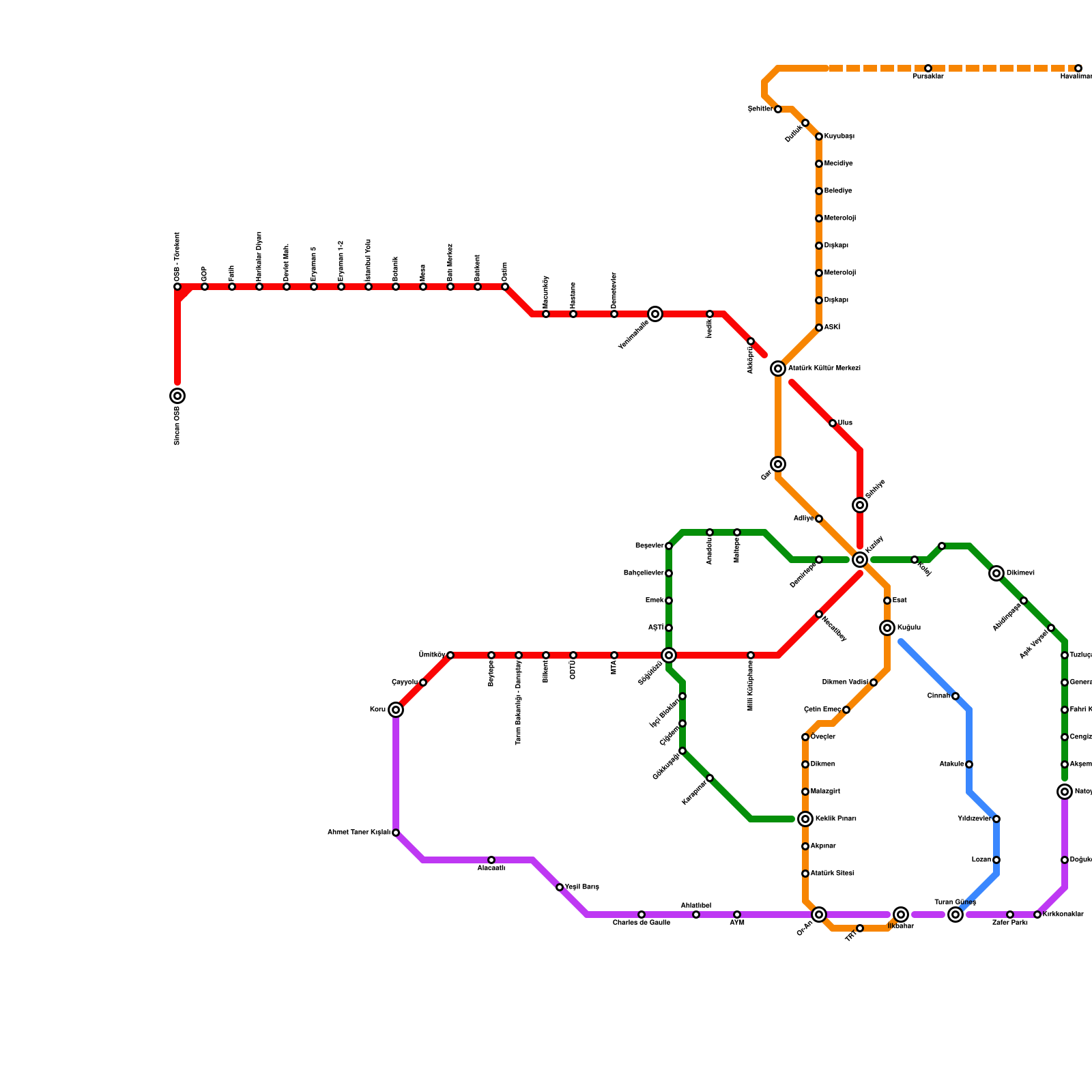 Ankara Metro Haritası Projeli İstasyonlar