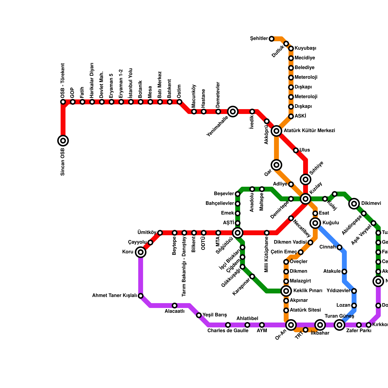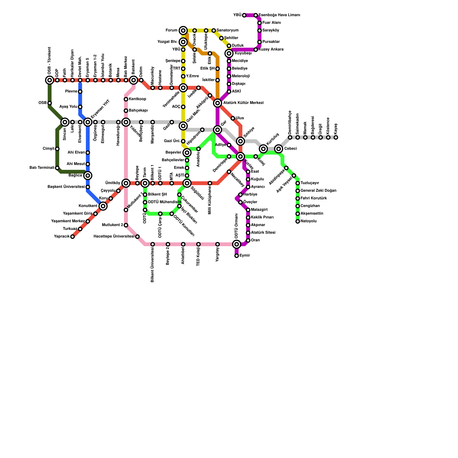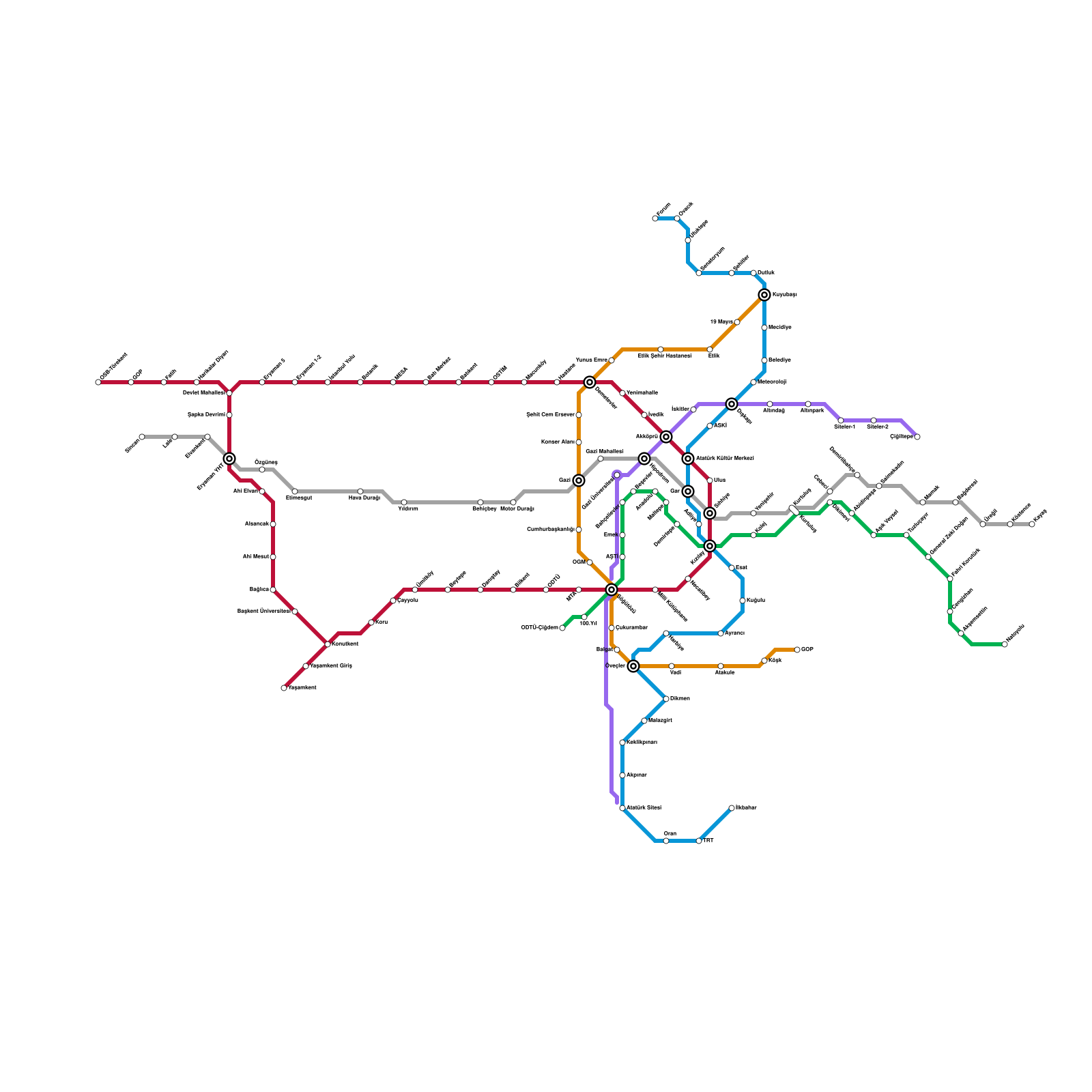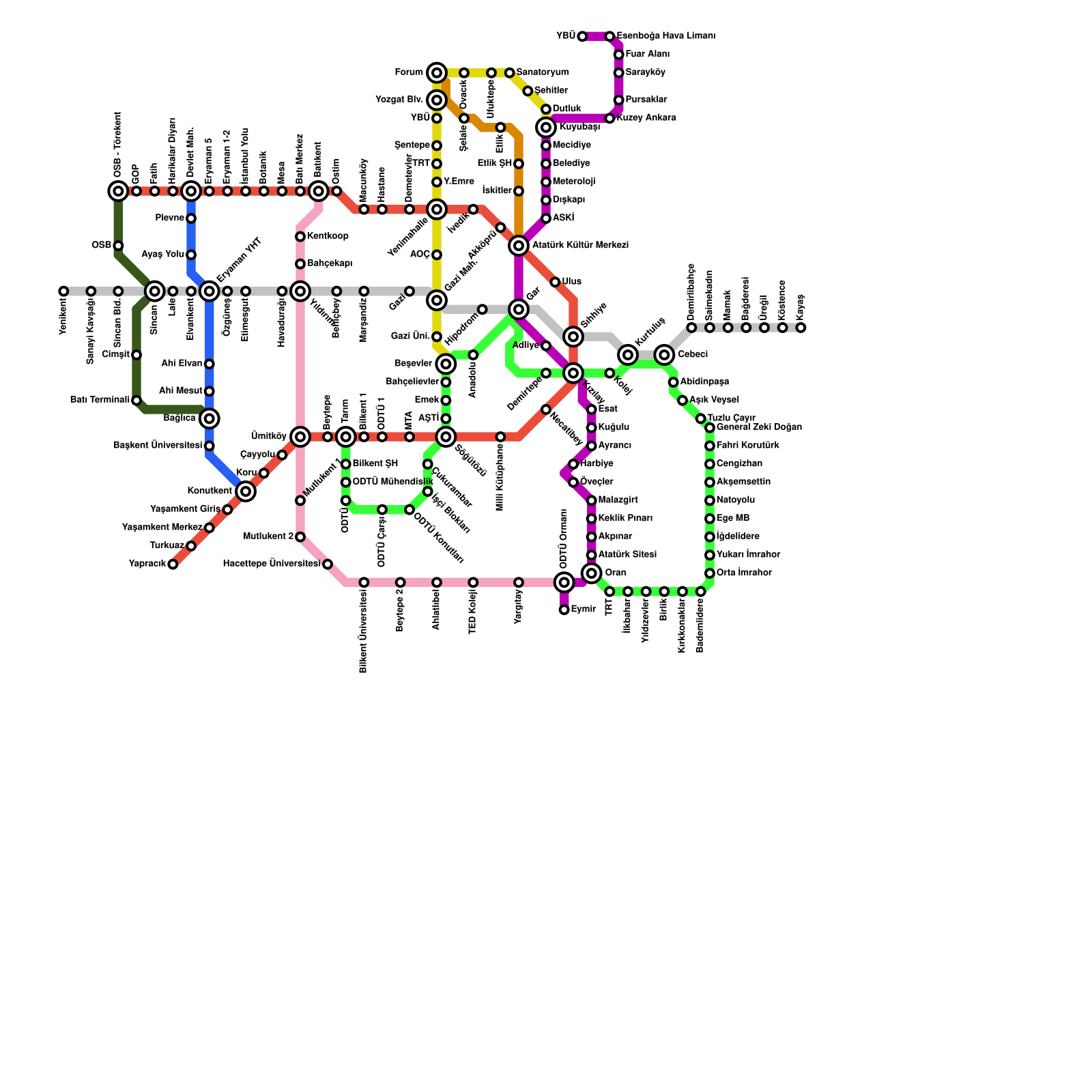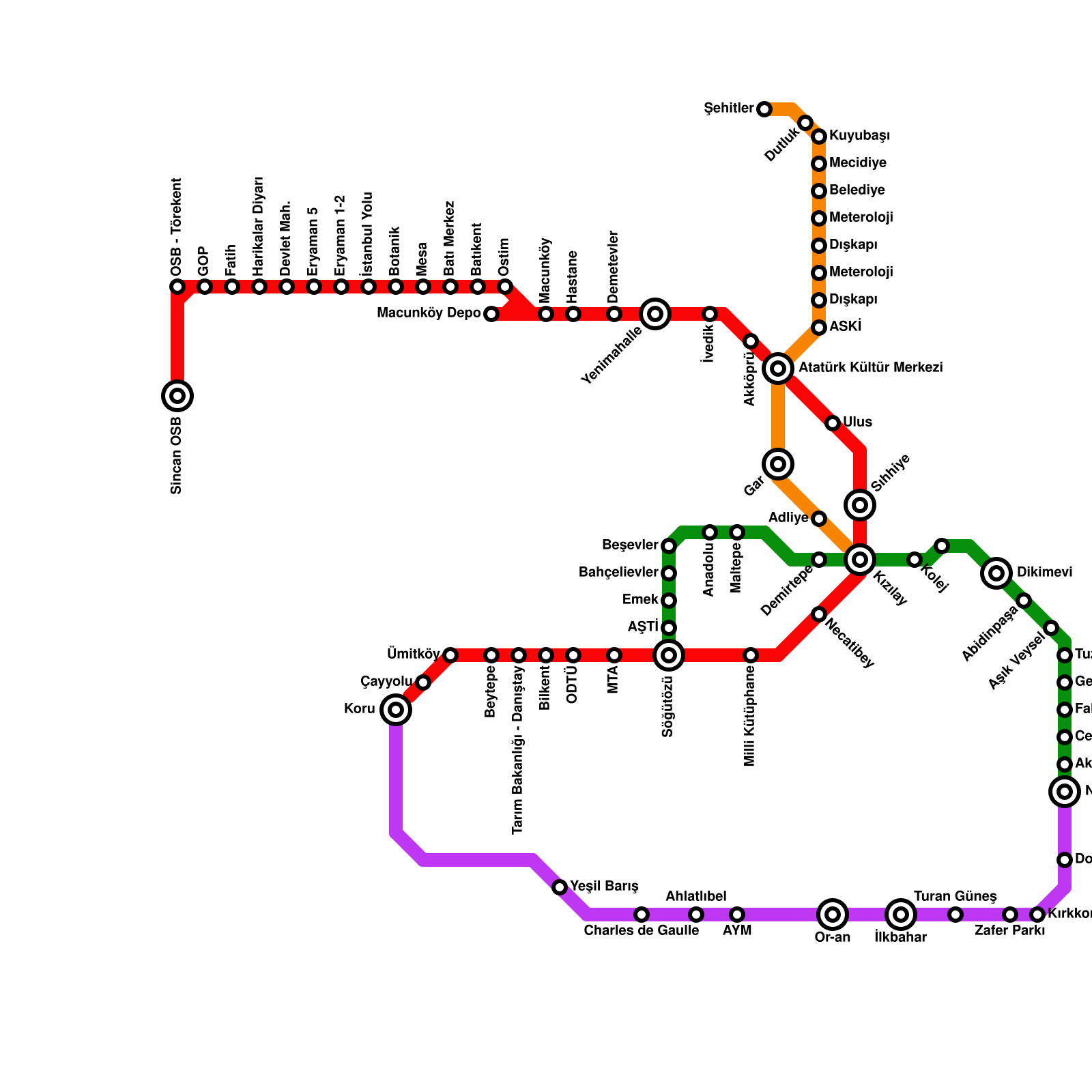 Ankara Metro Haritası Projeli İstasyonlar