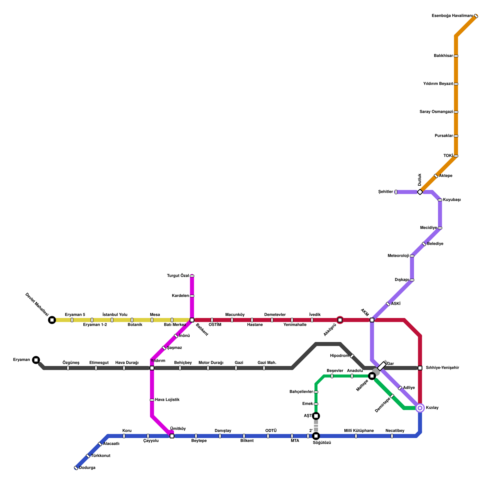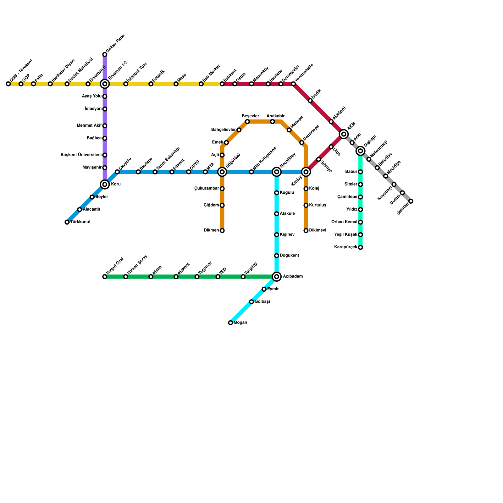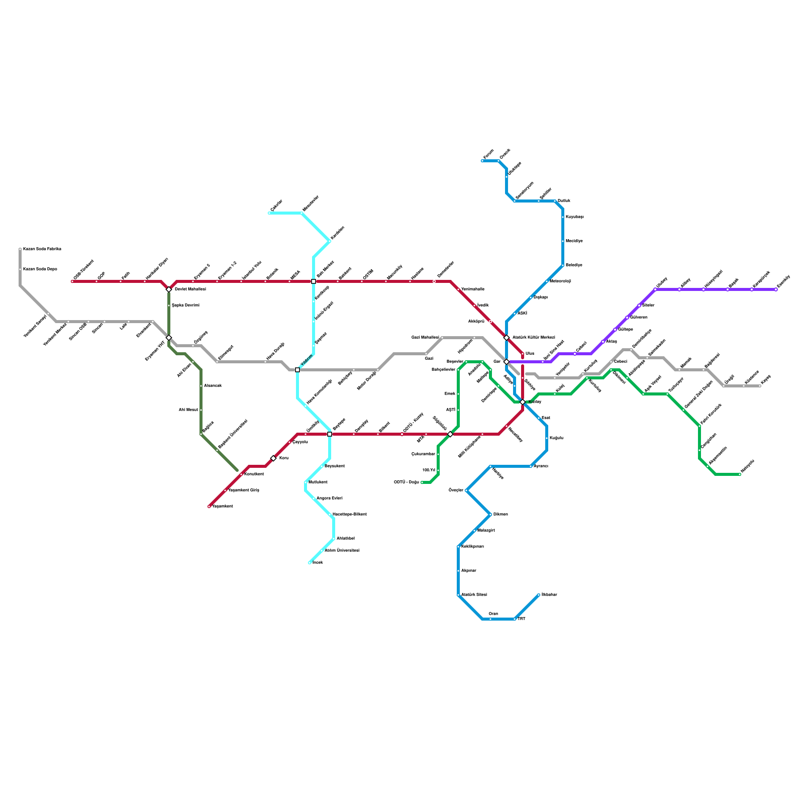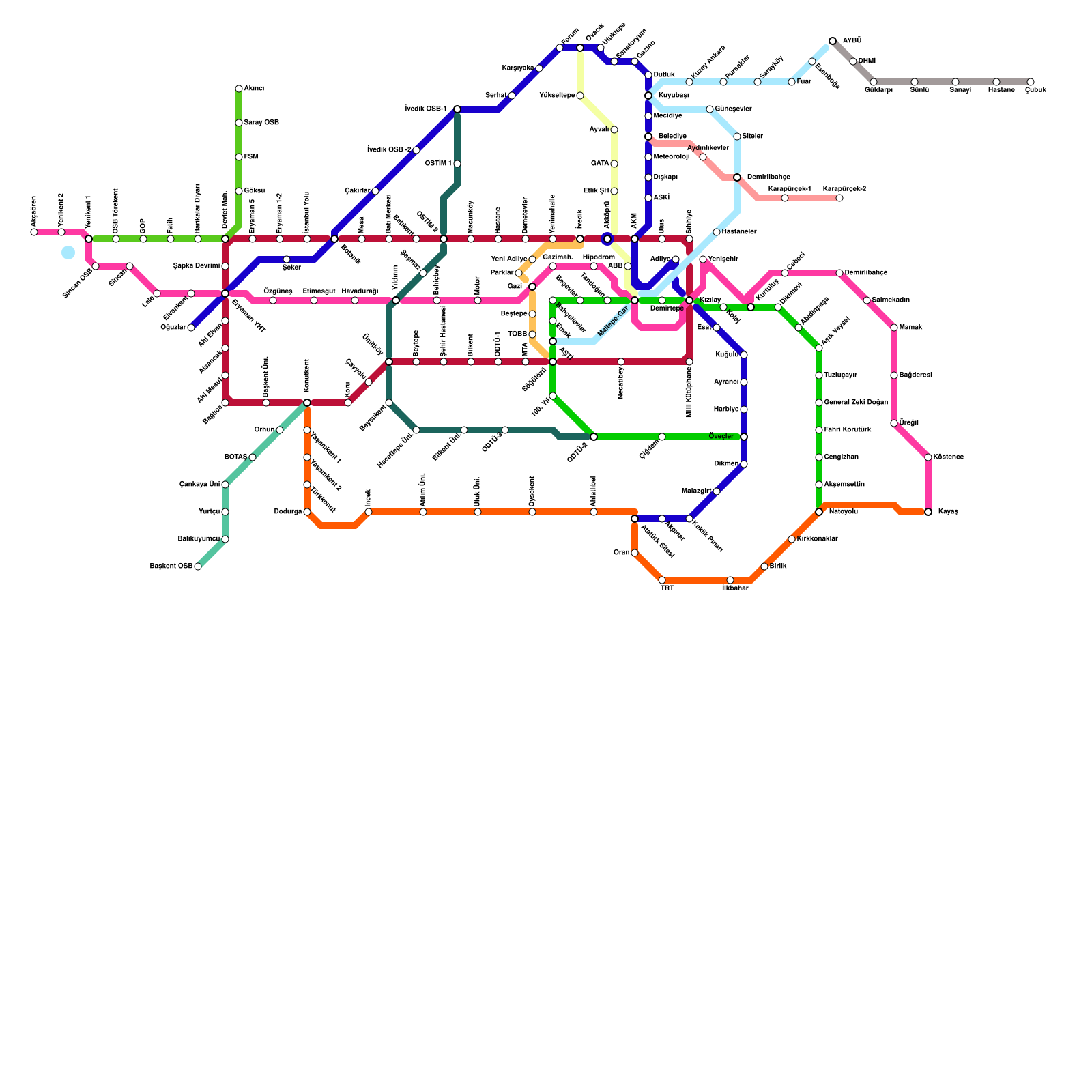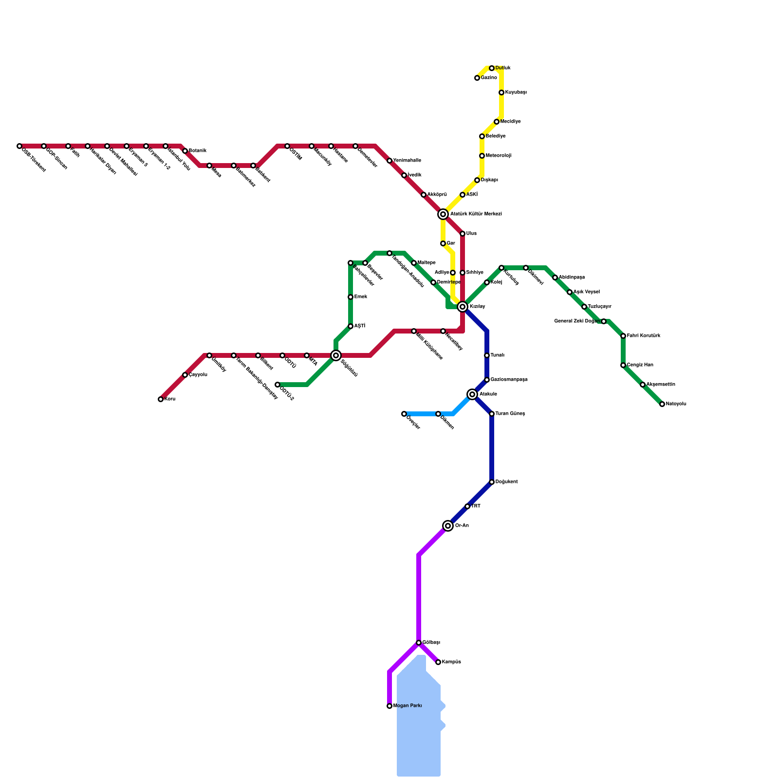 Ankara Metro Haritası Projeli İstasyonlar