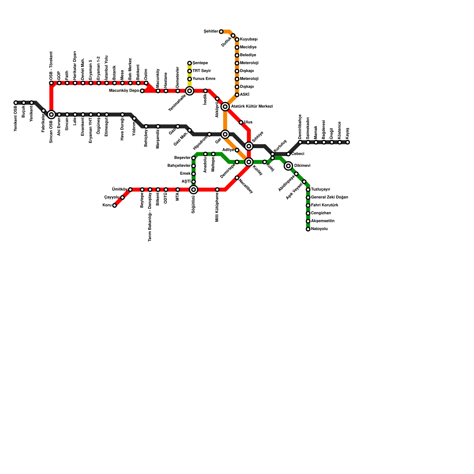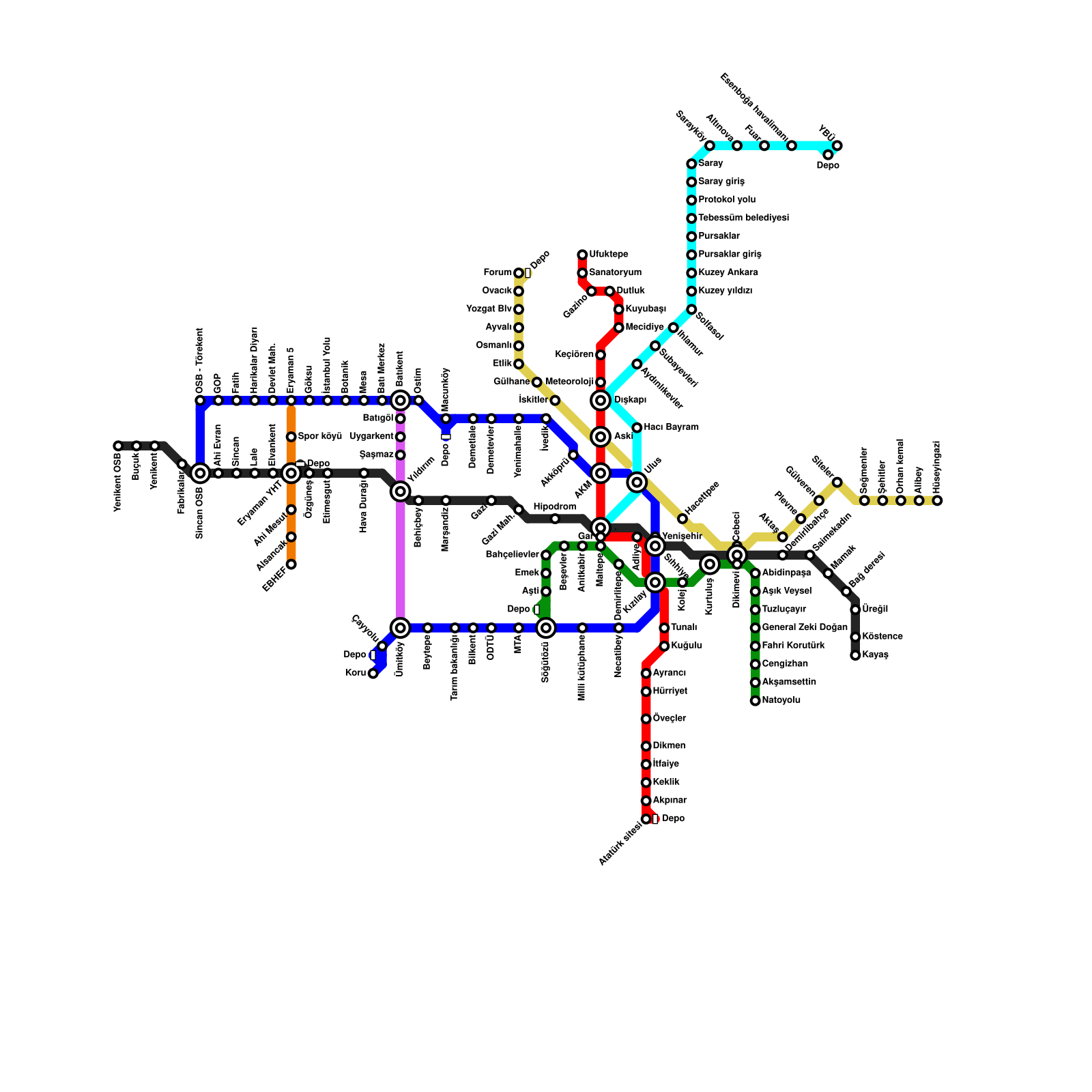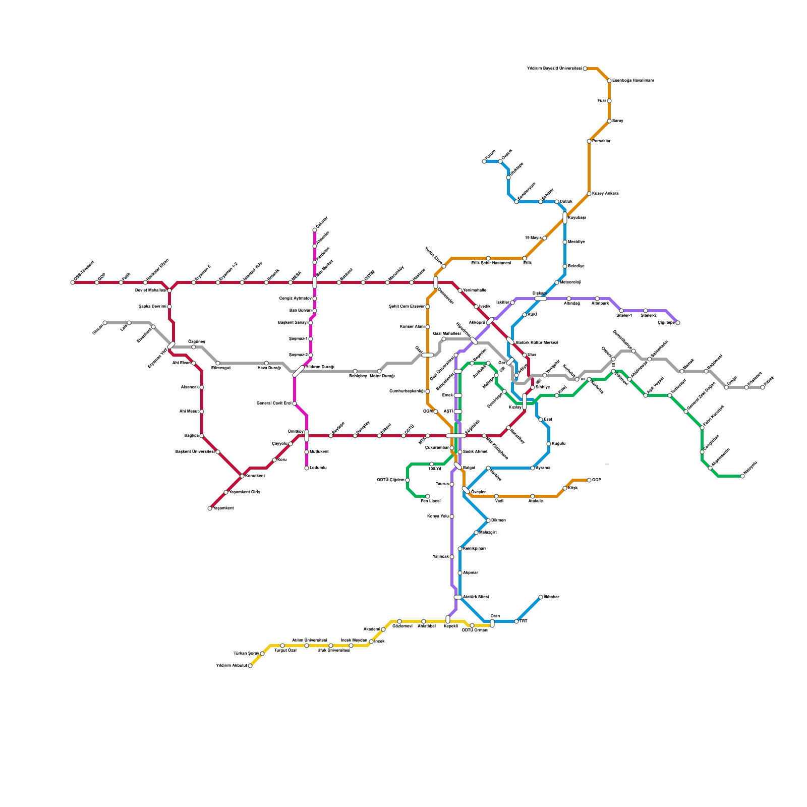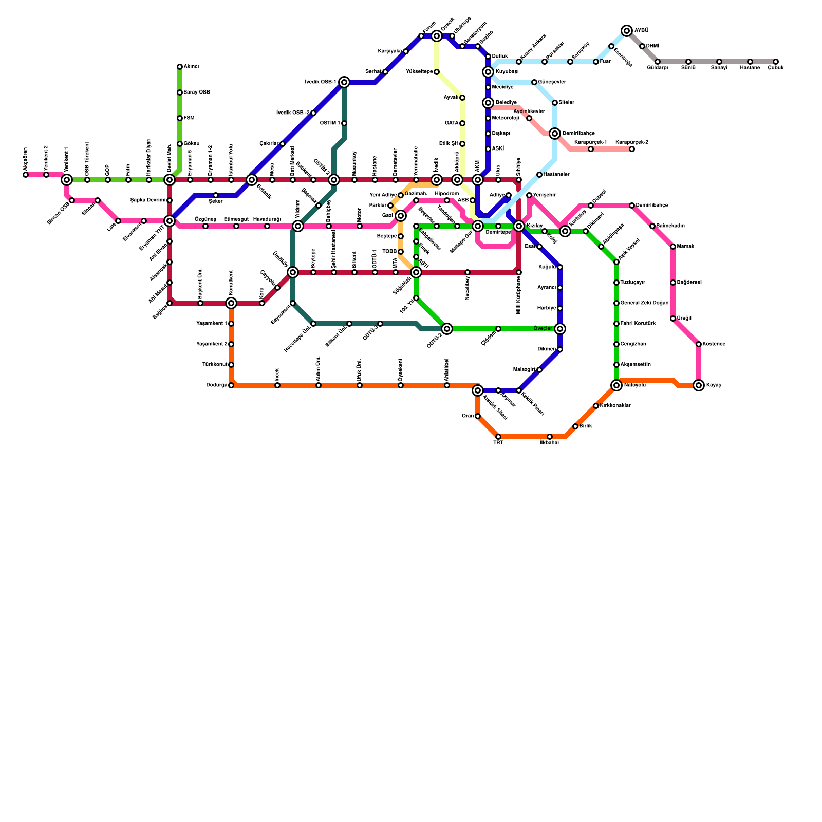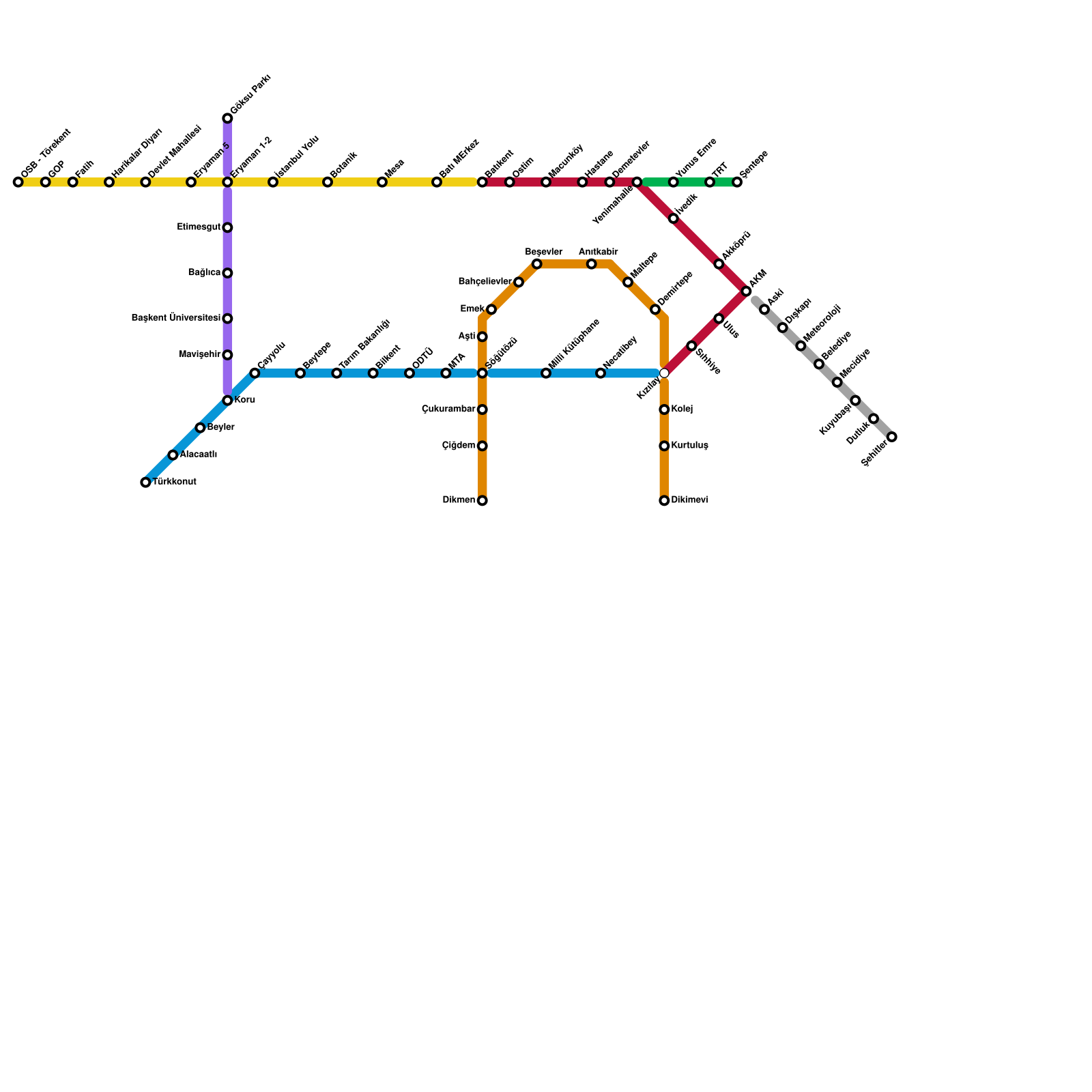 Ankara Metro Haritası Projeli İstasyonlar