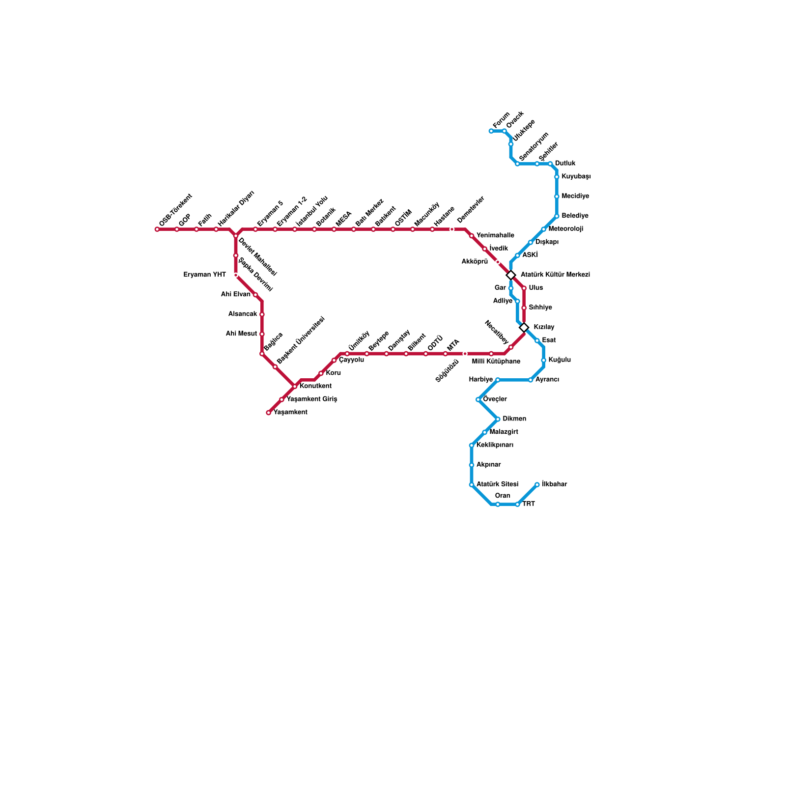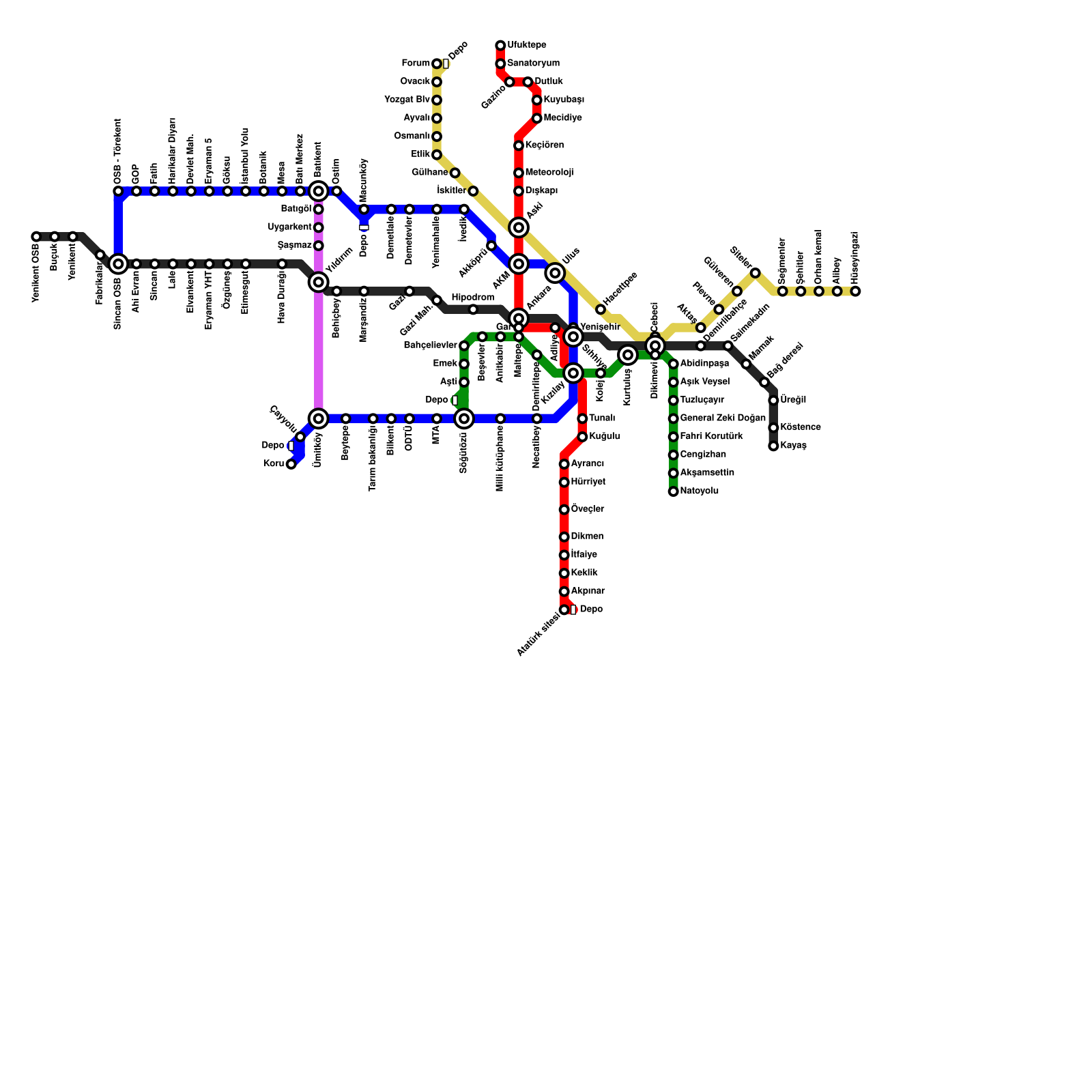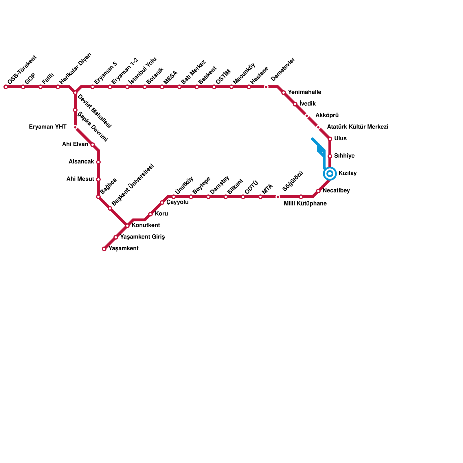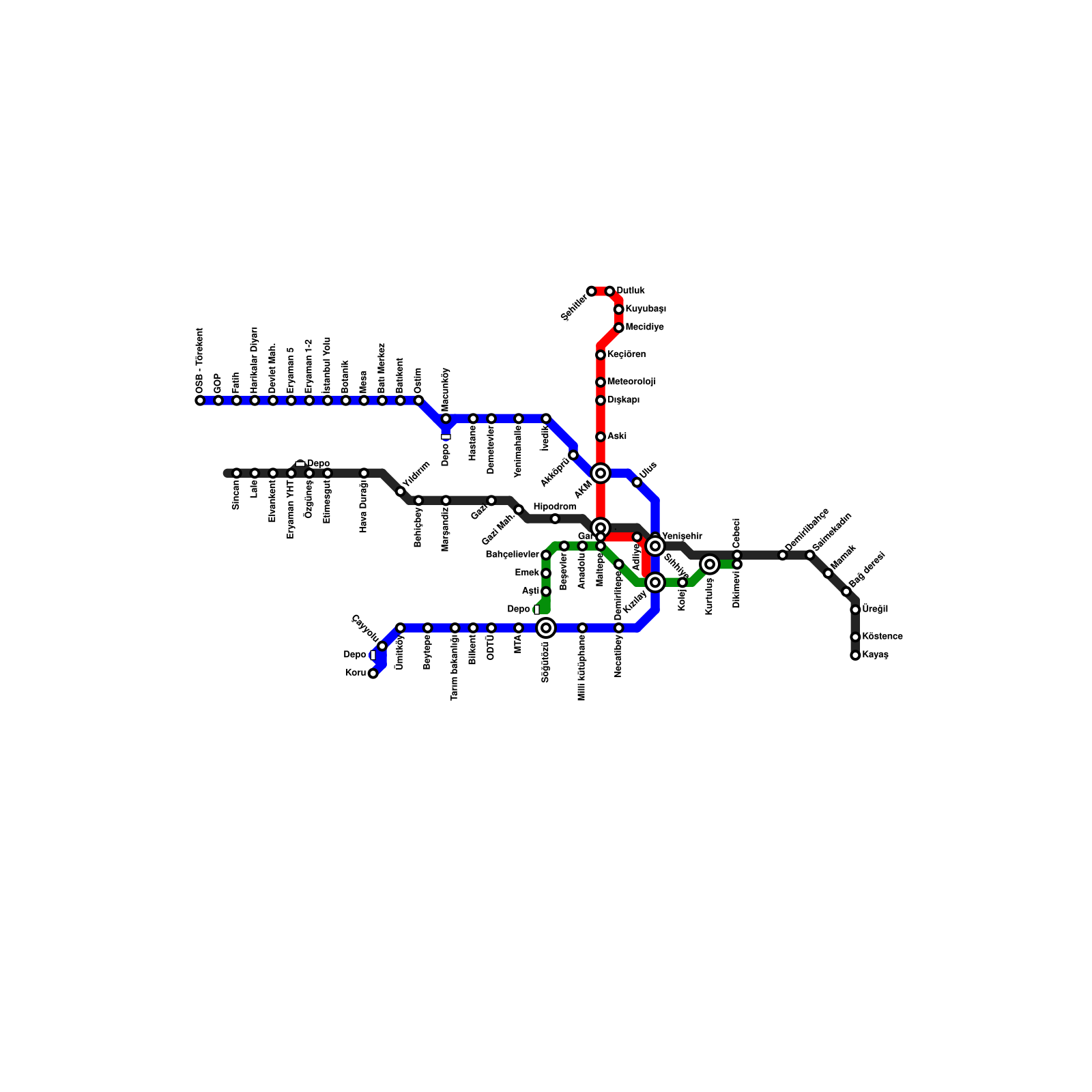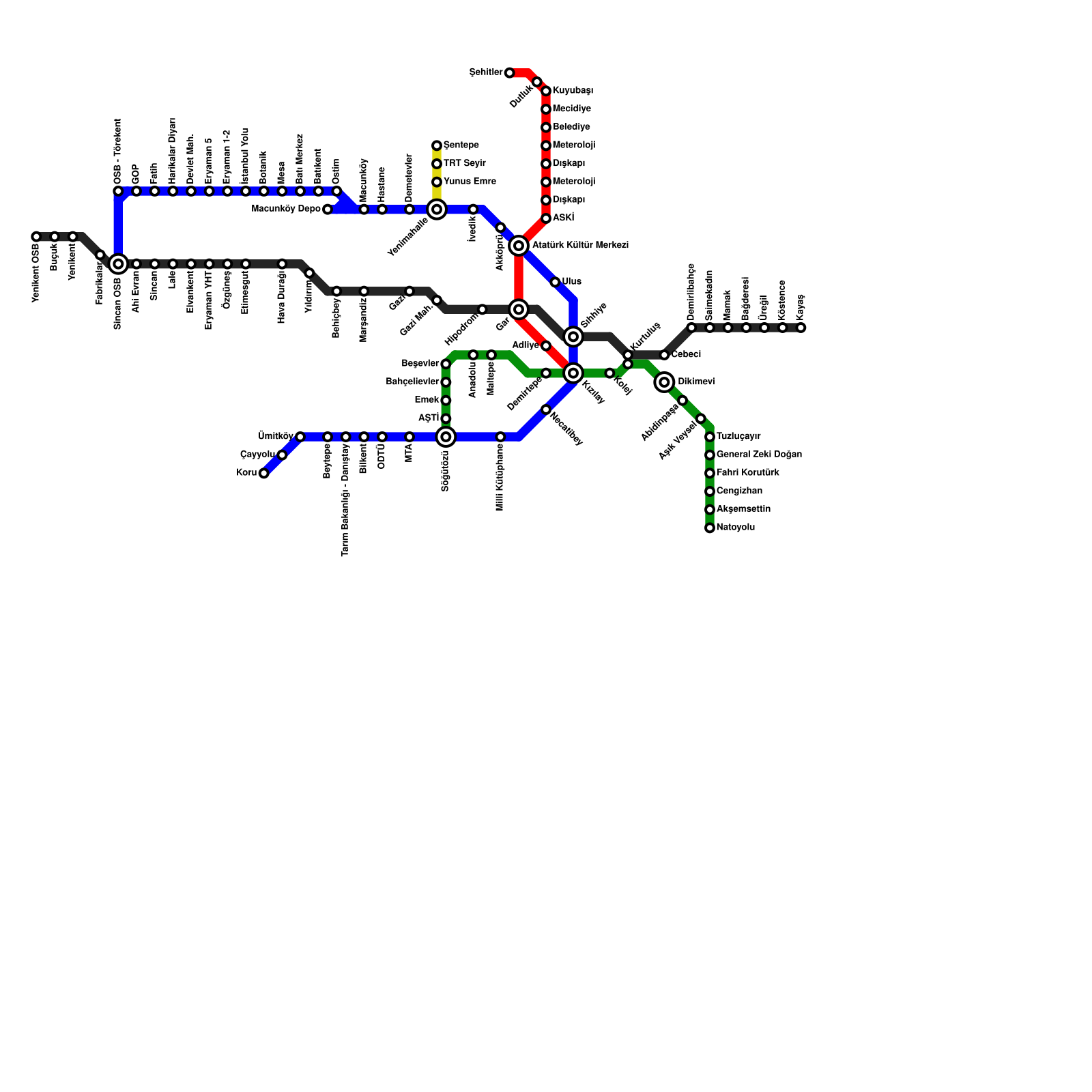 Ankara Metro Haritası Projeli İstasyonlar