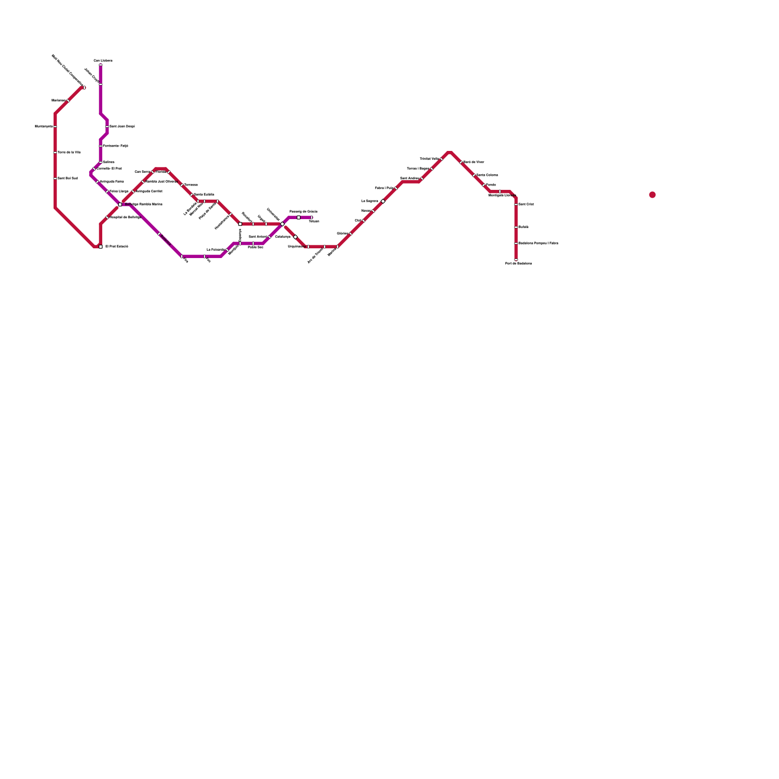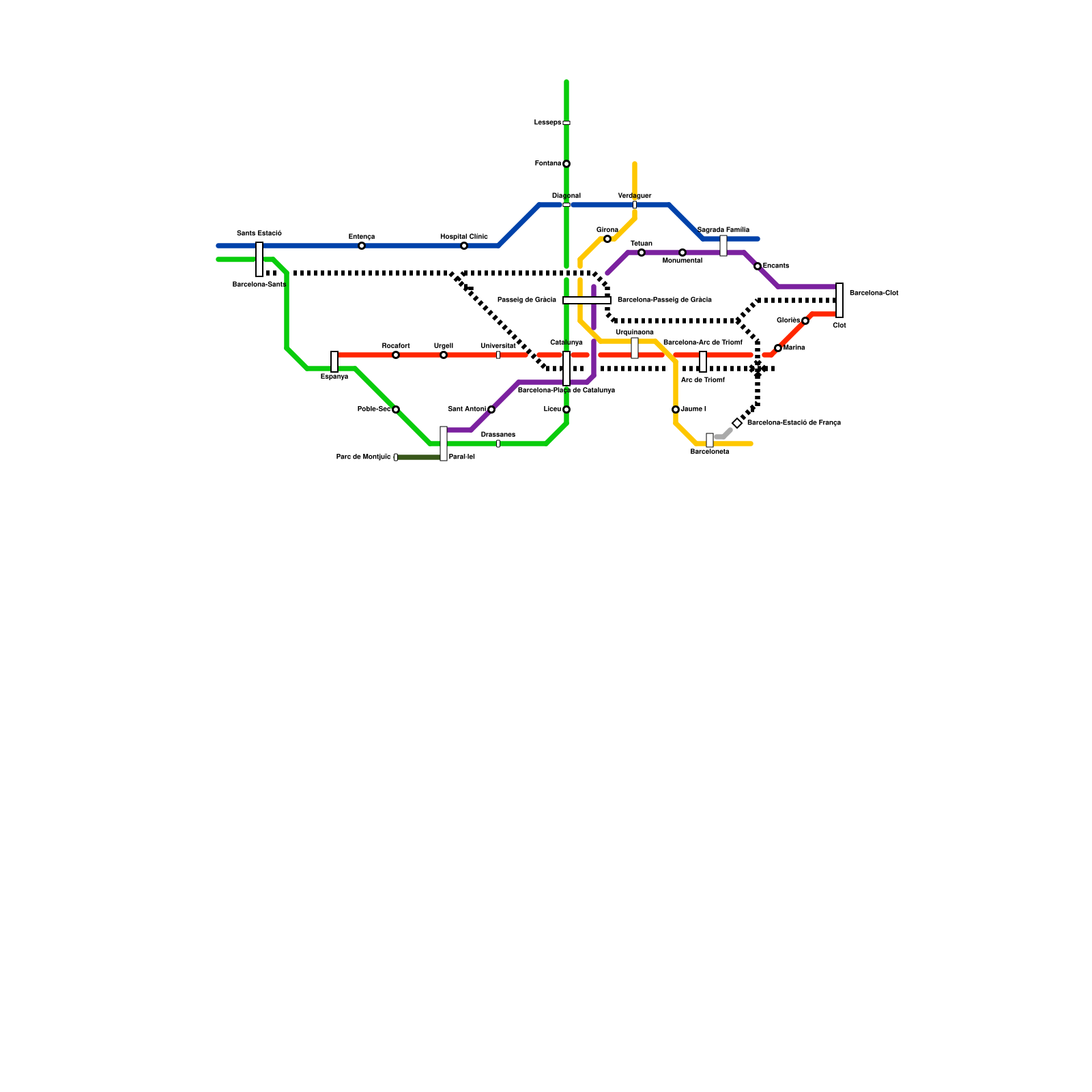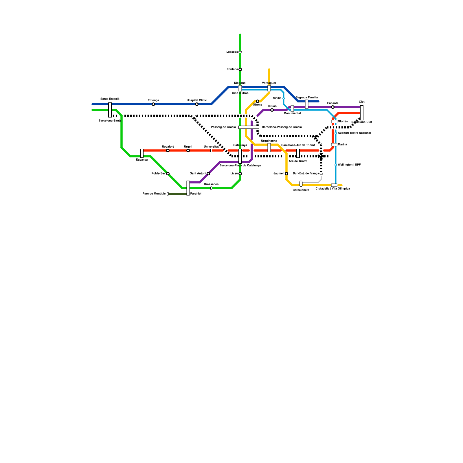 Barcelona (from L26-L30 of another map, on metrodreamin' https://metrodreamin.com/edit/dmk0TG9mWkJmTlN2RkxncGFHTE5URFBhZTNqMXwx) (speculative)