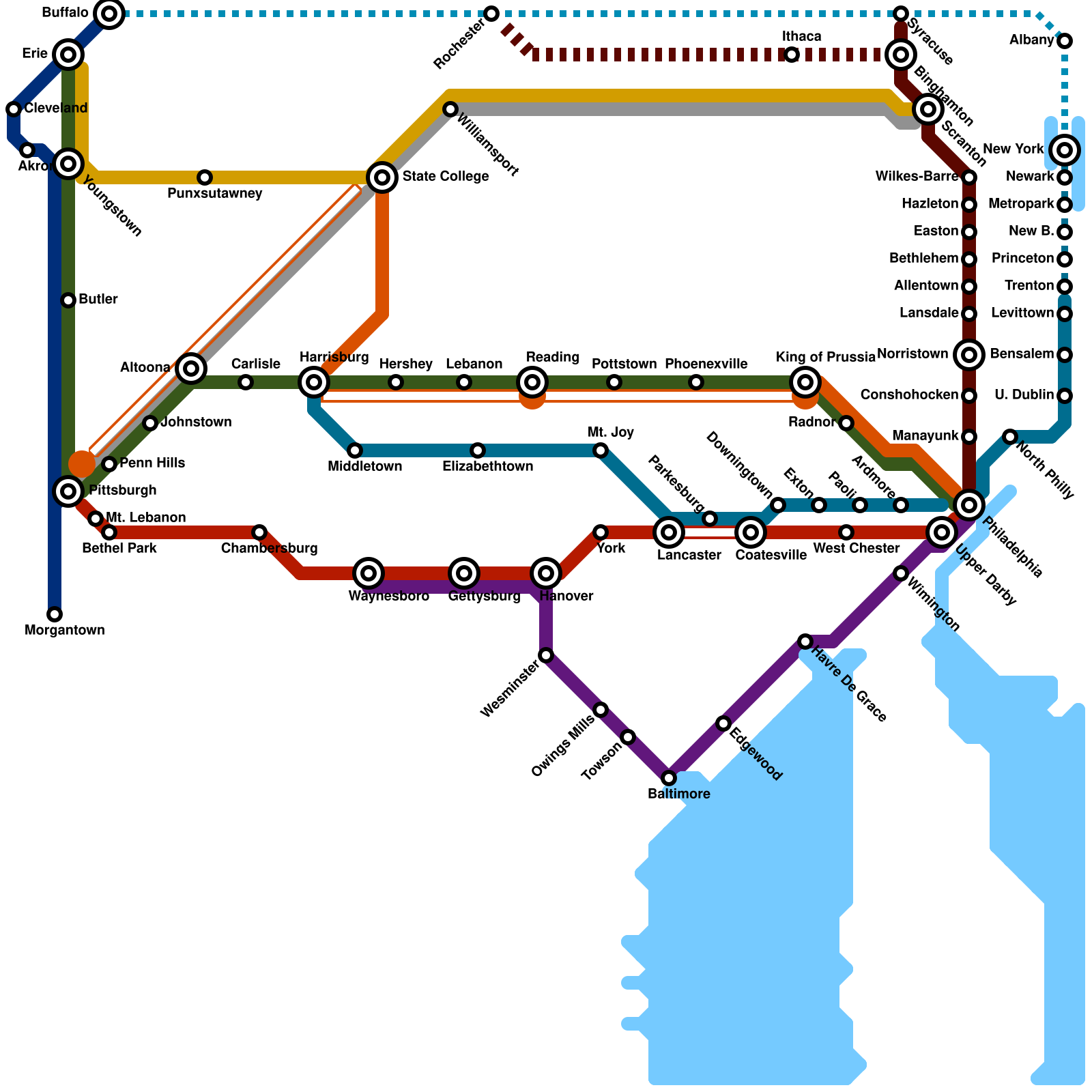 Amtrak NEC,Keystone, and Knowledge Corridors route map (real)