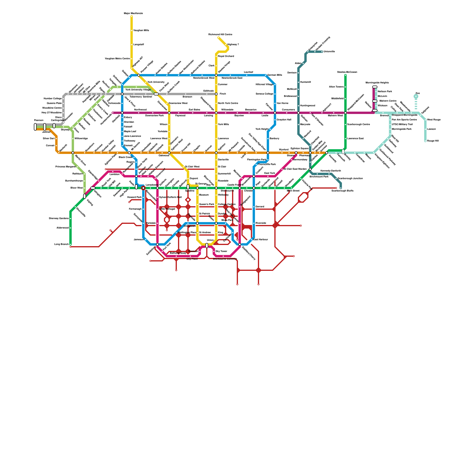 Toronto but it's all subway, no LRT (speculative)